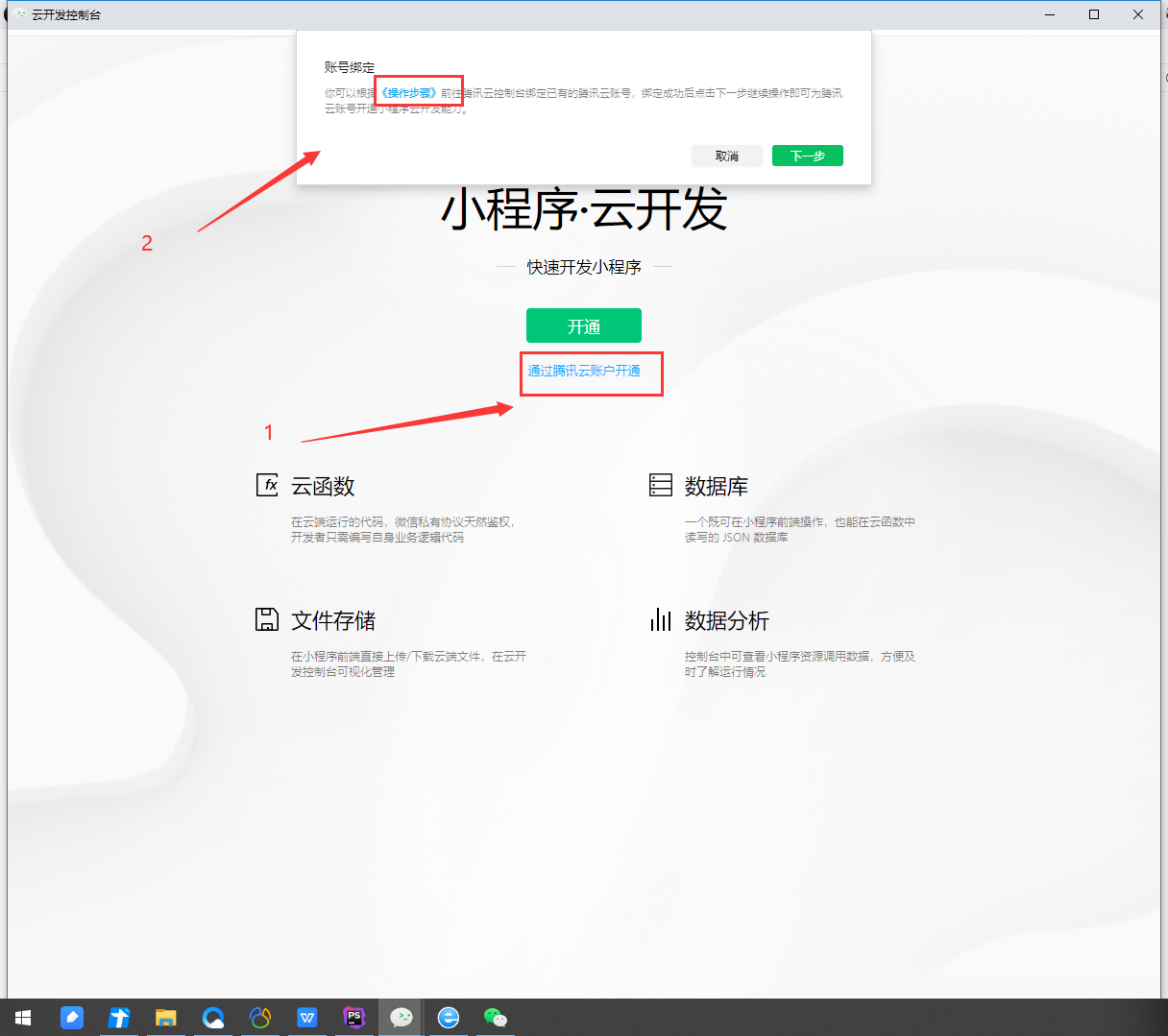 微信小程序开通云开发时,选择“通过通讯云账户开通”,跳转后的页面报错