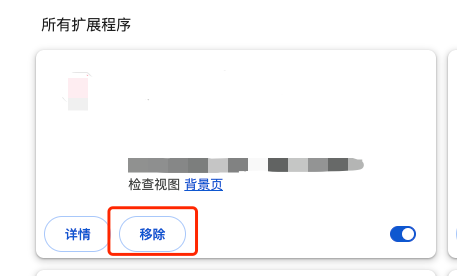 在浏览器设置里面找到扩展程序 -> 进入到管理页面 -> 找到插件 -> 「移除」插件。