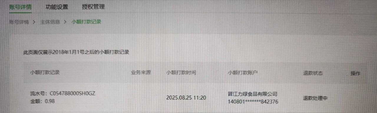 微信公众号的退款进度已经过了1个多月了还没有退回,一直显示退款处理中?附交易流水订单图