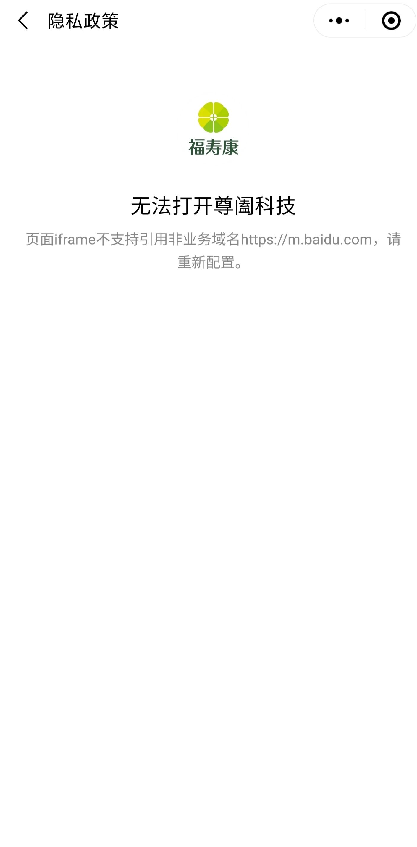 已在小程序公众平台配置业务域名,域名经过了ICP备案,web-view载入页面时提示:页面iframe不支持引用非业务域名https://m.baidu.com,点击返回显示已停止访问该网页?