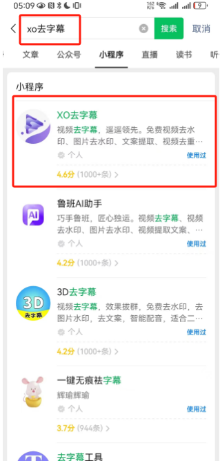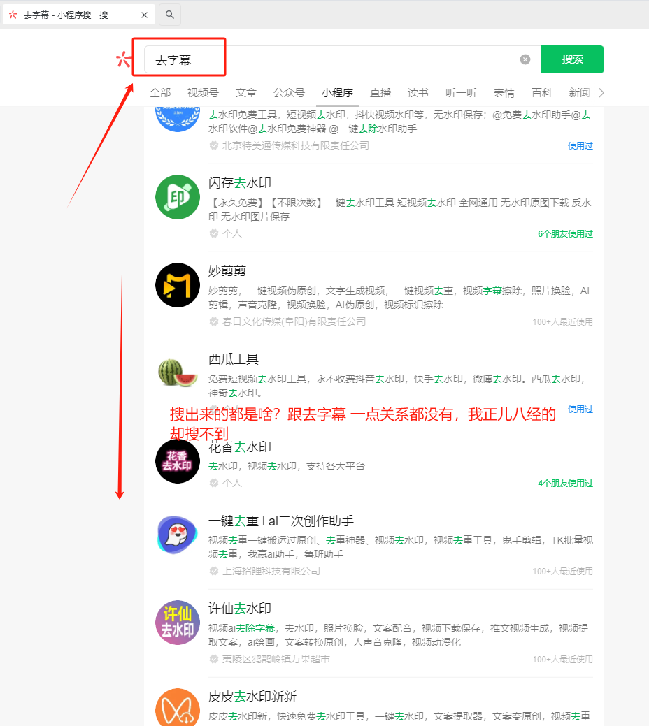 尝试修改下小程序简介,多加一点【去字幕】,修改后触发一下搜一搜的关键词算法。等可以通过去字幕关键词搜到后,排名会自己上去的。