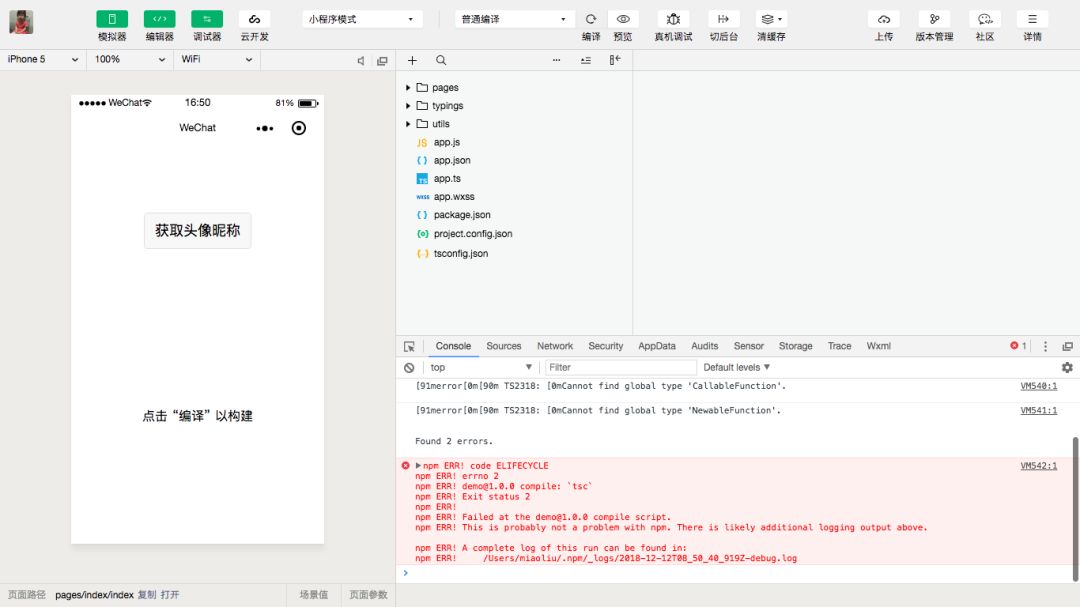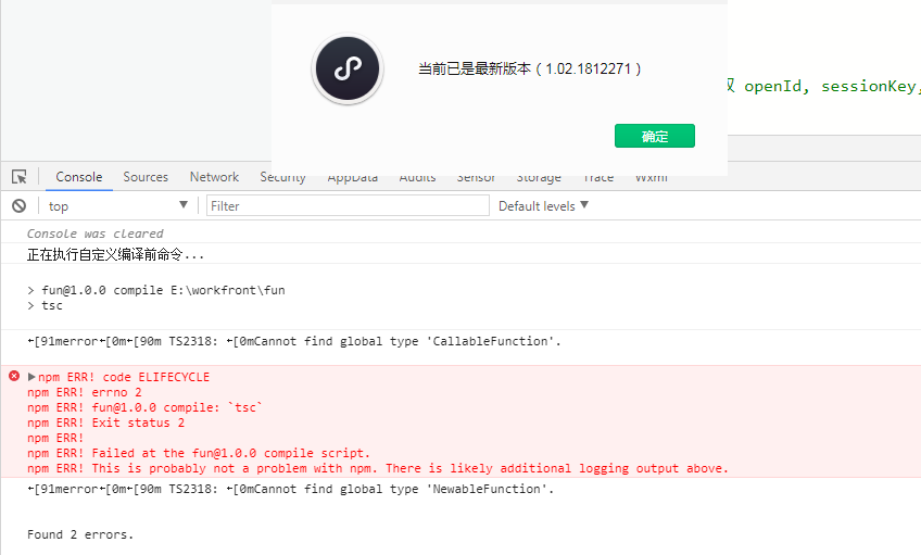error TS2318: Cannot find global type'CallableFunction'.error TS2318: Cannot find global type'NewableFunction'.小程序对Typescript支持不好,试着整个项目迁移到 Typescript,也是各种问题,放弃了。