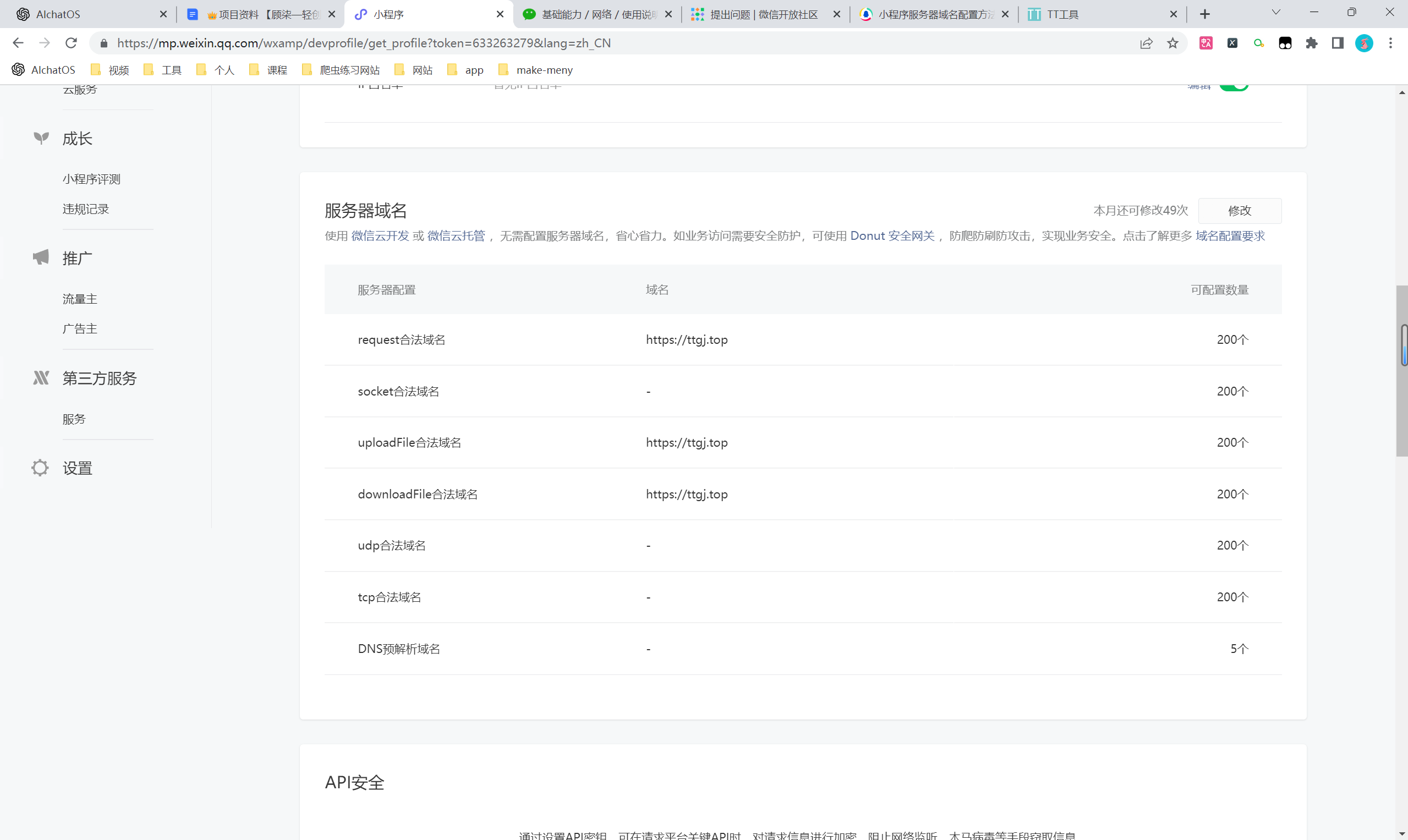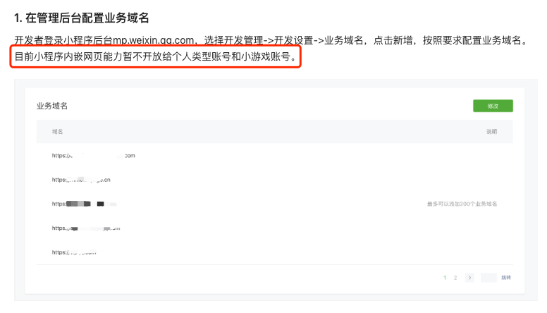 AppSecret点击生成后才会看到设置业务域名的入口