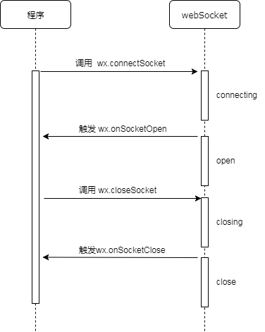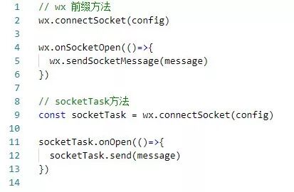 webSocket的生命周期一共有4个状态:connecting、open、closing、closed。我们可以通过 socketTask 的 readyState 属性来获取当前 webSocket 长连的状态。webSocket 的生命周期过程和 API 间的调用关系可以简单的入下图所示。 注意:只有长连处在 open 状态,才能够正常的收发消息,其他状态均会报错。 当小游戏进入到后台运行超过5秒时,客户端会禁止小游戏的所有网络连接。这是一个非常频繁的断线逻辑,十分考验程序断线错误处理逻辑。建议大家可以在用户点击右上角按钮退出小程序/小游戏时,主动帮用户断线,待用户切回时再重接上去。 当 webSocket 长连超过一段时间没有任何网络传输时,客户端会主动关闭这条长连,以节省资源。开发者可以设置业务心跳,每隔一段时间与后台进行一次通讯,维持长连。 API接口主要有两类,一类是前缀为 “wx” 的接口,一类 “socketTask” 的接口。举例,同样是连接长连后发送一条消息,两种写法区别如下。 最初小游戏只允许存在1个 webSocket 连接时,并没开放 socketTask 的管理方式。随着小游戏的能力提升,可支持同时存在的 webSocket 连接个数变多,在使用 wx.connectSocket 创建 webSocket 连接时会返回 socketTask 任务对象,便于去管理每一条连接链路。 推荐开发者尽量使用 socketTask 的方式去管理 webSocket 链接,每一条链路的生命周期都更加可控。同时存在多个 webSocket 的链接的情况下使用 wx 前缀的方法可能会带来一些和预期不一致的情况。例如:当存在多条连接时,wx.onSocketOpen、wx.sendSocketMessage、wx.onSocketMessage 等接口会只作用于第一条连接的长连。且wx.onSocketOpen 接口不能多次注册 webSocket 长连的回调函数,仅最后一次生效。使用 socketTask 任务的方式则不会出现上述问题。 微信提供了 webSocket 最基础的接口能力,开发者可以在其基础上进行封装,根据业务需要扩展能力。比如封装一个 offSocketOpen 的方法来取消注册 socketOpen 的回调函数。 02 长连并没有像短连那样“一问一答”的交互形式。在某些场景下,开发者需要这种与服务器的交互。建议前端与后台协议,每条客户端上行的信息,服务器都下发一个对应的回包,去“模拟短连”。比如开发者向服务器询问1+1和1+2等于多少,服务器返回了3和2,便可清晰知道哪一个数字对应着哪一个请求的答案。此外,还可以设置业务超时逻辑,便于判断上传是否丢包 03 在 webSocket 发送数据时,数据格式可以选择string或者ArrayBuffer。这里要注意的是,由于小游戏禁止了 Function() 和 eval()语法。所以像 protobufjs 这类用了这些语法的库是不能直接拿来用的。 04 在测试调试长连的时,目前开发者工具不支持通过设置 offline 模拟长连断网的情况(短连是支持的),所以在测试断线重连的一些情况时,可以辅助一些第三方工具,或者用真机调试以及“拔网线”的方式来测试。 05 在进行多人游戏测试时,在开发者工具中熟练使用“自定义编译条件”,以及“多账号调试”这两个功能可以极大的提升开发测试效率。 06 长连占用的系统资源,会导致手机发热比较明显。所以在不需要使用 webSocket 的场景下,建议及早断开长连,需要时再连接。 监控长连是否异常断线,在长连的使用中,尤其在小游戏多人对战中是尤为重要的。socketError 事件并不能认为是异常断线。 首先 socketError 事件并不一定会导致断线,其次若是由客户端机制断开的长连,是不会触发 socketError 事件的。 最简单的方式可以通过 onClose 回调函数触发时系统传入的 code 是否为1000来判断。当然开发者自身也可以通过代码判断是否是自身调用的 close 函数触发的 onclose 事件,监控异常断线。 希望大家在实际应用中能帮助到到大家。