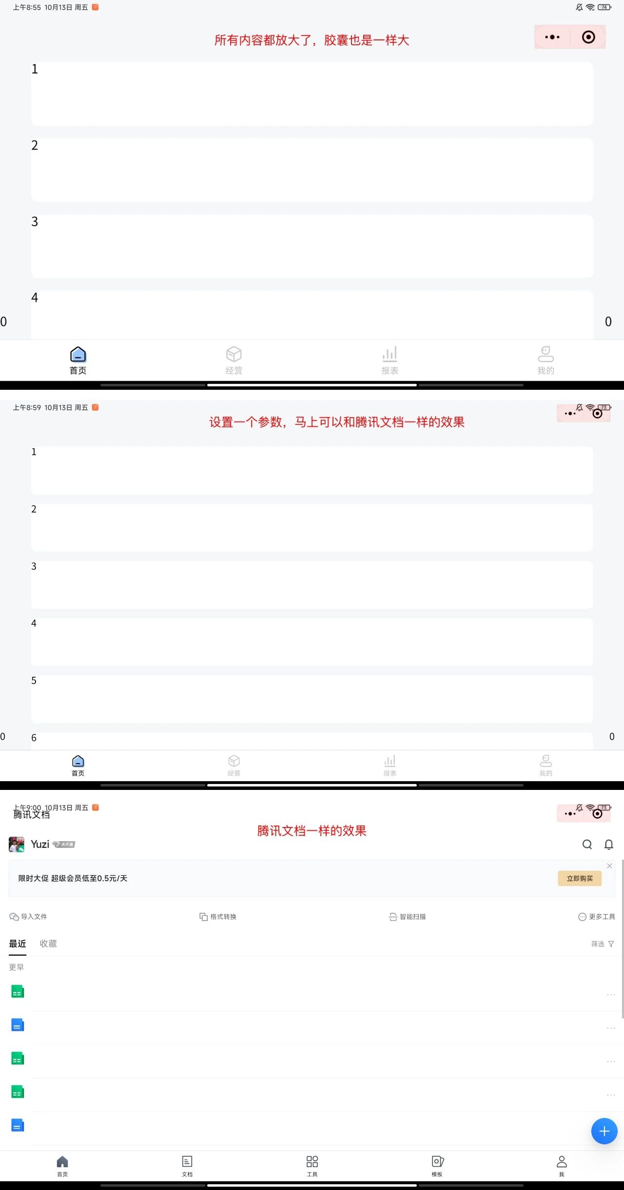 想请问一下,为什么腾讯文档或者金山文档的小程序可以适配ipad分辨率,像胶囊、菜单栏,就可以正常的显示正常大小,而自己开发的不行,请问是不是哪里需要设置参数?