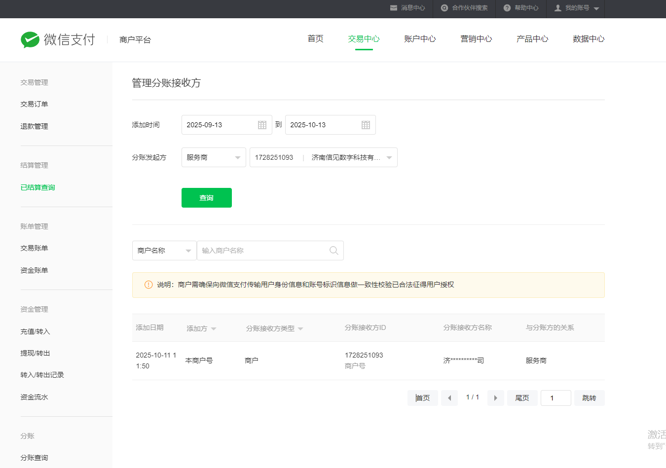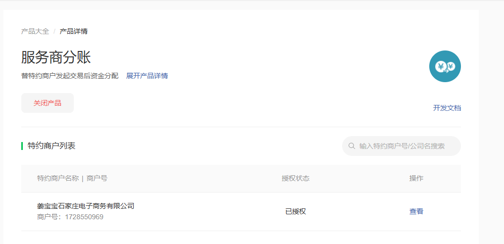 子商户产品已经开通分账了,并且分账接收方也添加了服务商