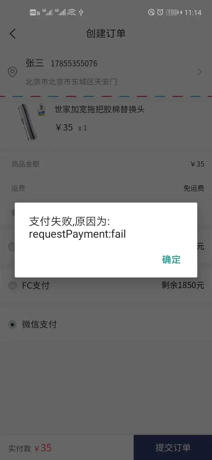 uni.requestPayment 微信支付 提示fail errors,未唤起微信APP支付界面。