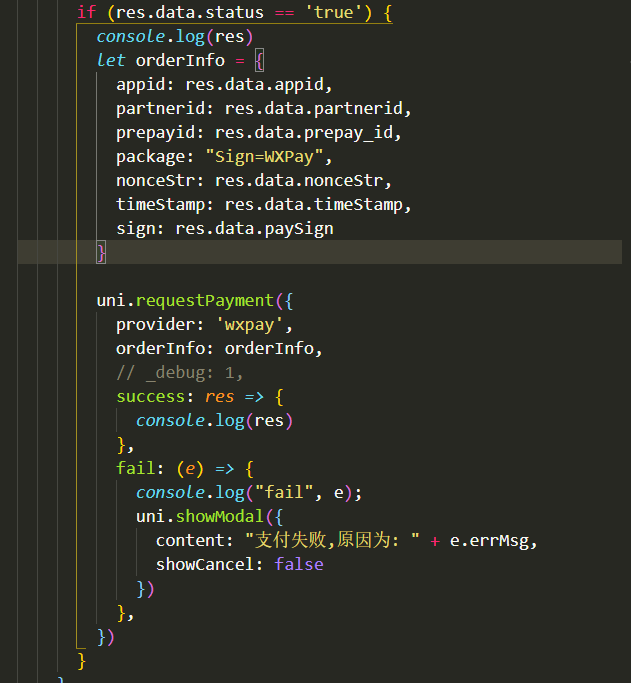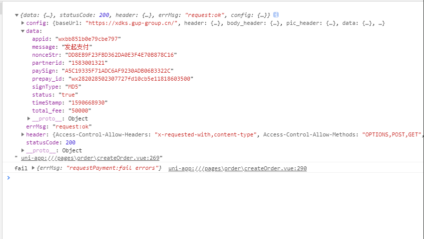 图1是我前端uni.requestPayment 微信支付请求的代码