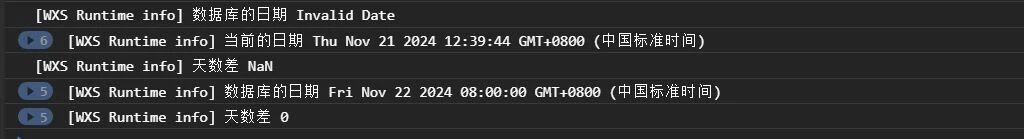 想要实现,将数据库的时间转换为,今天,明天,后天,具体日期等。wxs写了段代码,打印结果是获取的数据库时间为Invalid Date 。数据库保存的时间两种方式和打印结果如图:在发布信息时,无论选择哪天,显示的都是今天。数据库保存的时间类型会影响转换吗?