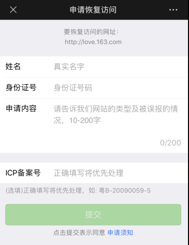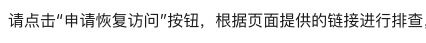 访问https://love.163.com 会提示“该网页可能存在被他人恶意利用生成违规内容的情况(如xss注入、文件上传漏洞等)。请点击“申请恢复访问”按钮,根据页面提供的链接进行排查,修复漏洞后可申请恢复访问。”