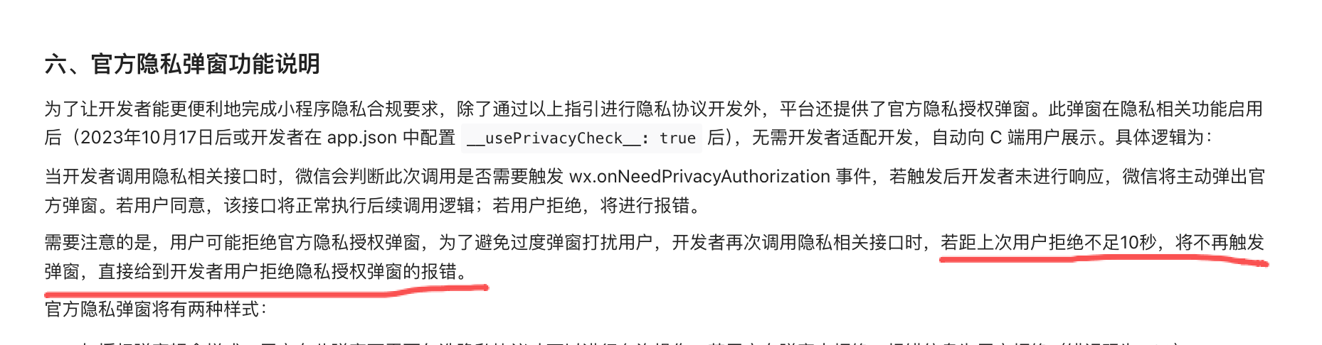 这个报错好像是没办法监听到,好像只能自行注册onNeedPrivacyAuthorization去处理隐私协议的 弹窗。