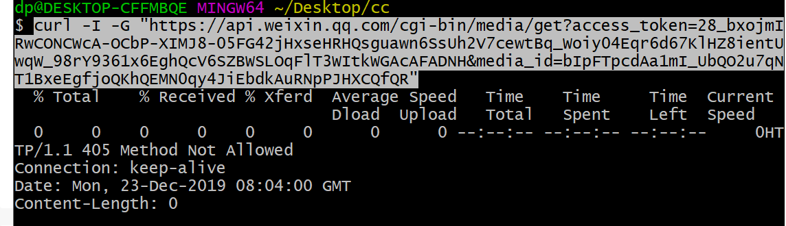 curl -I -G "https://api.weixin.qq.com/cgi-bin/media/get?access_token=28_bxojmIRwCONCWcA-OCbP-XIMJ8-05FG42jHxseHRHQsguawn6SsUh2V7cewtBq_Woiy04Eqr6d67KlHZ8ientUwqW_98rY9361x6EghQcV6SZBWSLOqFlT3WItkWGAcAFADNH&media_id=bIpFTpcdAa1mI_UbQO2u7qNT1BxeEgfjoQKhQEMN0qy4JiEbdkAuRNpPJHXCQfQR"