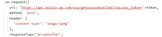 axios.request({ method: 'post', responseType: 'arraybuffer', //关键是这里 url, data: { scene: "1=1", page: "", }, headers: { 'Content-Type': 'application/json;charset=null' } })