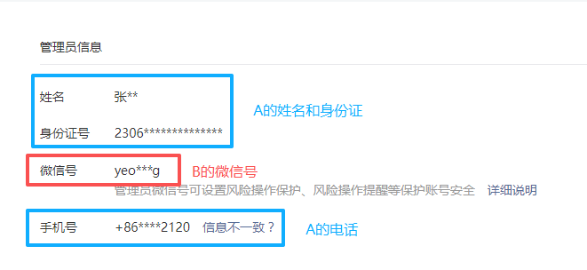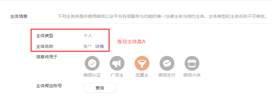 我们有一个微信公众号个人号要办理迁移到企业号,个人号的注册主体是A(姓名张**),大概2016年左右把账号主管理员转移给了B(微信号yeo***g),当年是可以把个人号管理员转移给别人的,后来就要求注册主体和管理员一致。这些年管理员也一直都是B。
