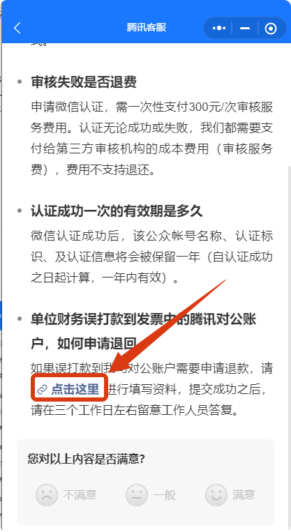 公众号认证时候,财务将300元认证费用公对公打款给腾讯公司,如何申请退款?