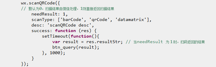 官方对这个问题始终没有说法,最终找到的解决办法是在回调里延时一秒,这样ios手机可以正常使用扫一扫