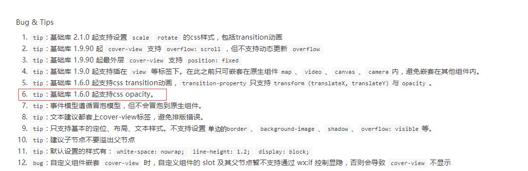 其实是支持opacity的,文档链接:https://developers.weixin.qq.com/miniprogram/dev/component/cover-view.html我这边在ios测试也是可以的,所以想跟你确认下这个问题,你方便给个代码片段( https://developers.weixin.qq.com/miniprogram/dev/devtools/minicode.html ),我们定位下这个问题