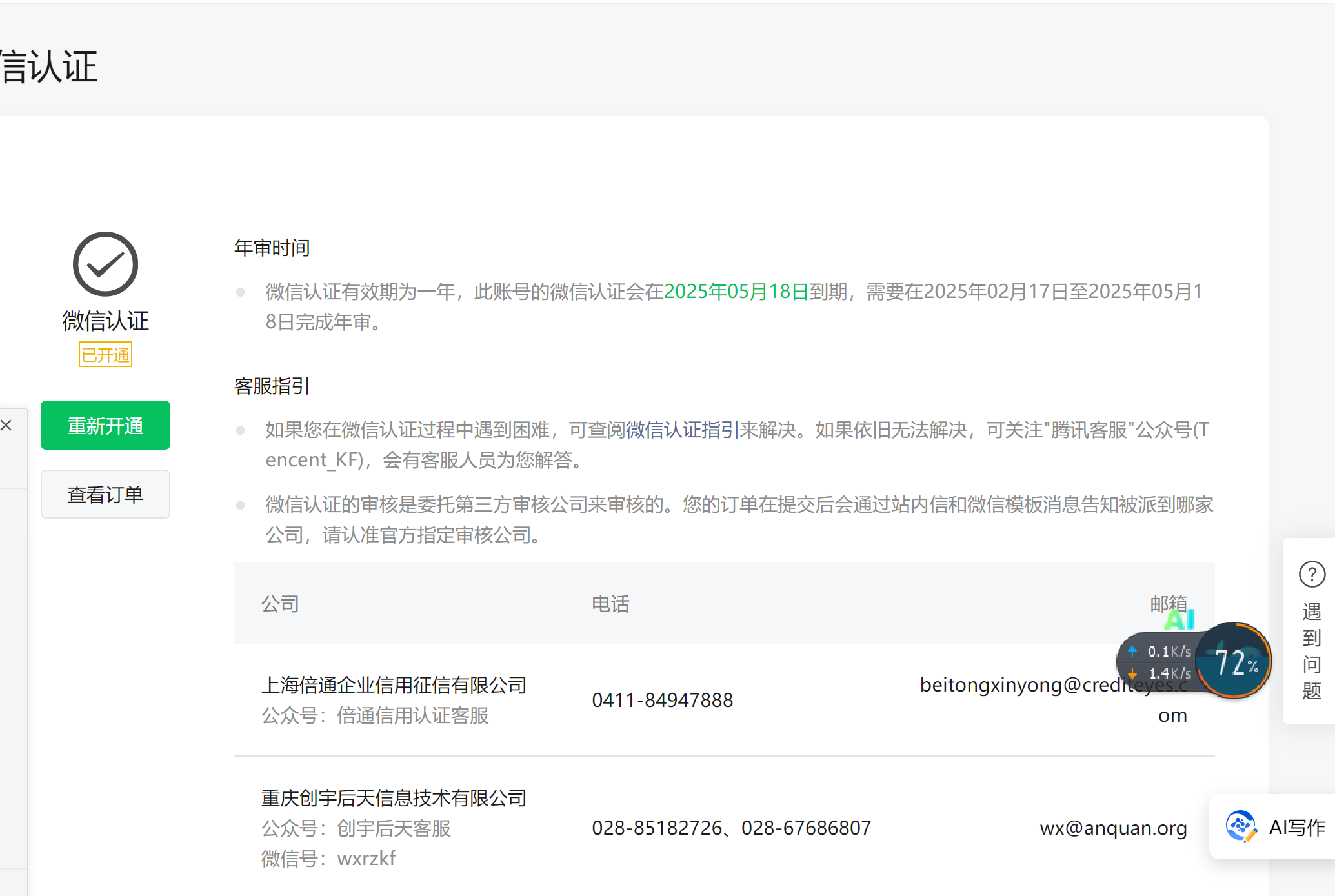 上面截图是按指引走的,找微信认证--自主续期。但只有《重新开通》,不知道是不是这里?
