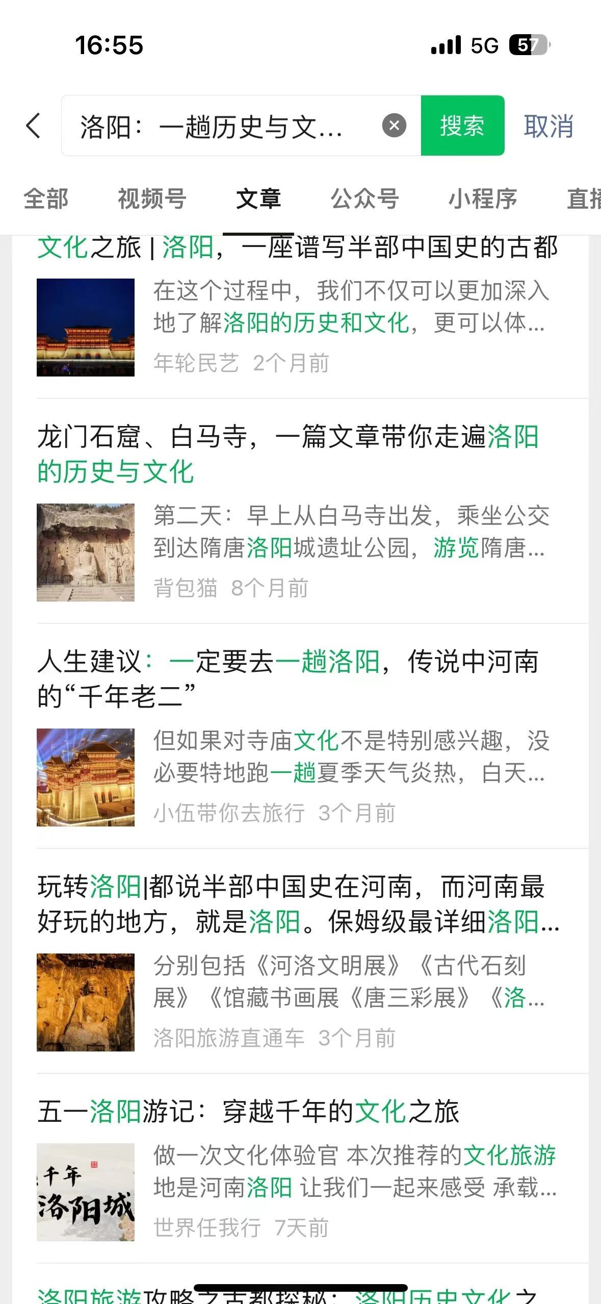 标题 洛阳:一趟历史与文化的旅行 https://mp.weixin.qq.com/s/fQ96uOzsbO1X6tMPHlMPtg 公众号ID:gh_d357d86ee586