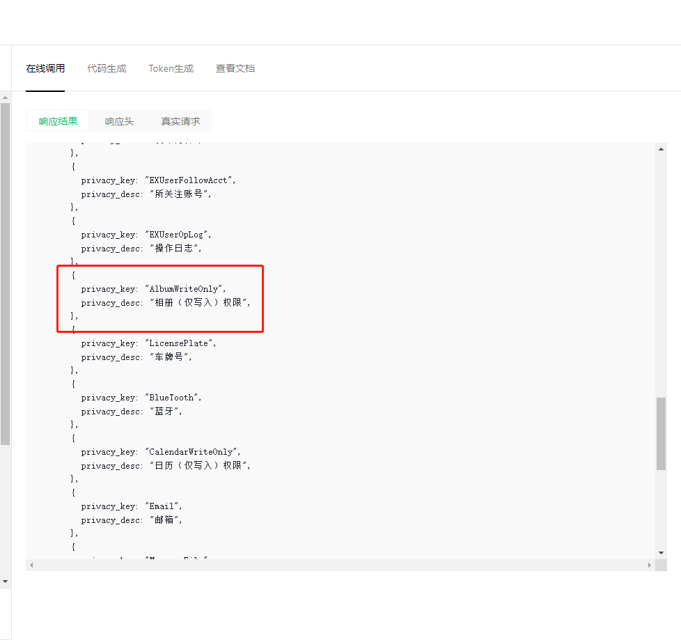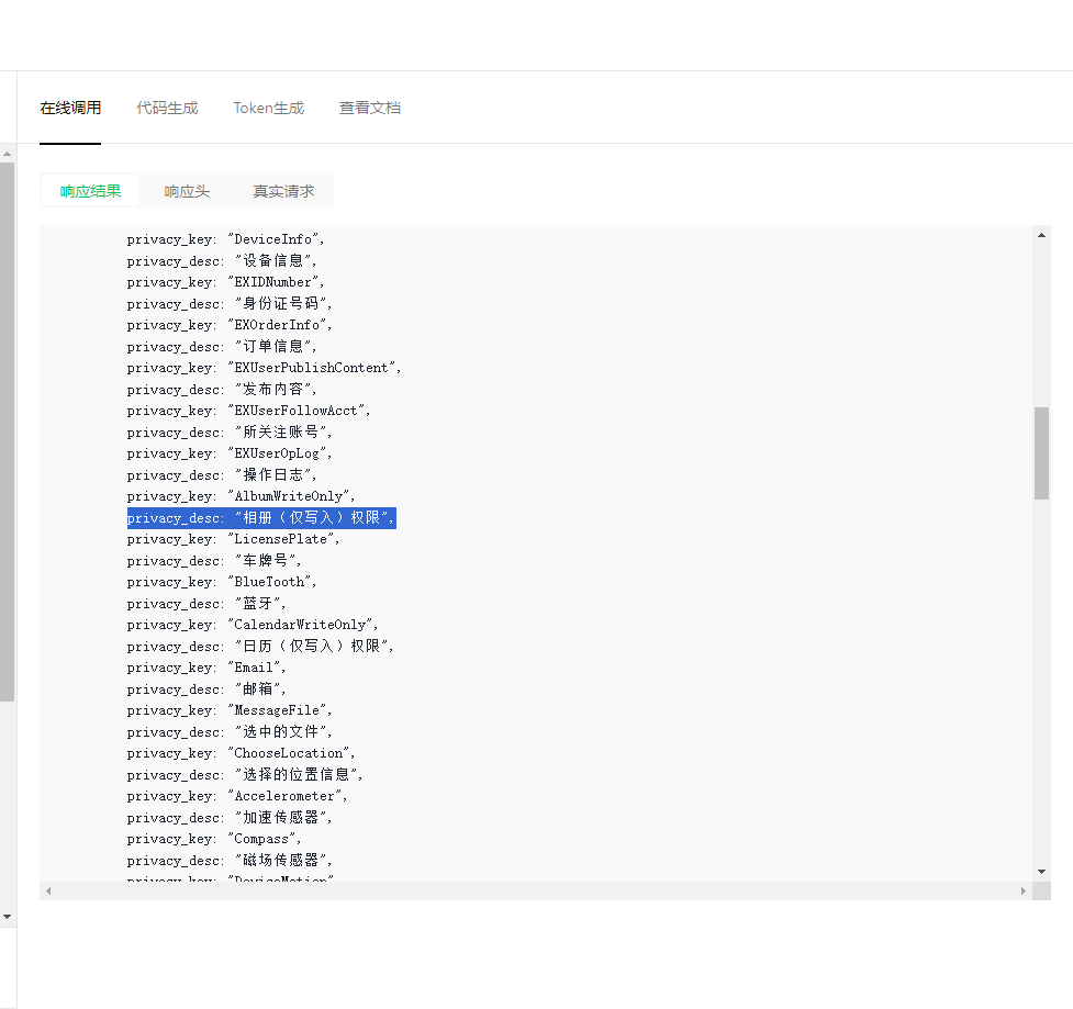 我们要去查隐私协议,看看微信给我们返回的内容里面有没有对应的权项,