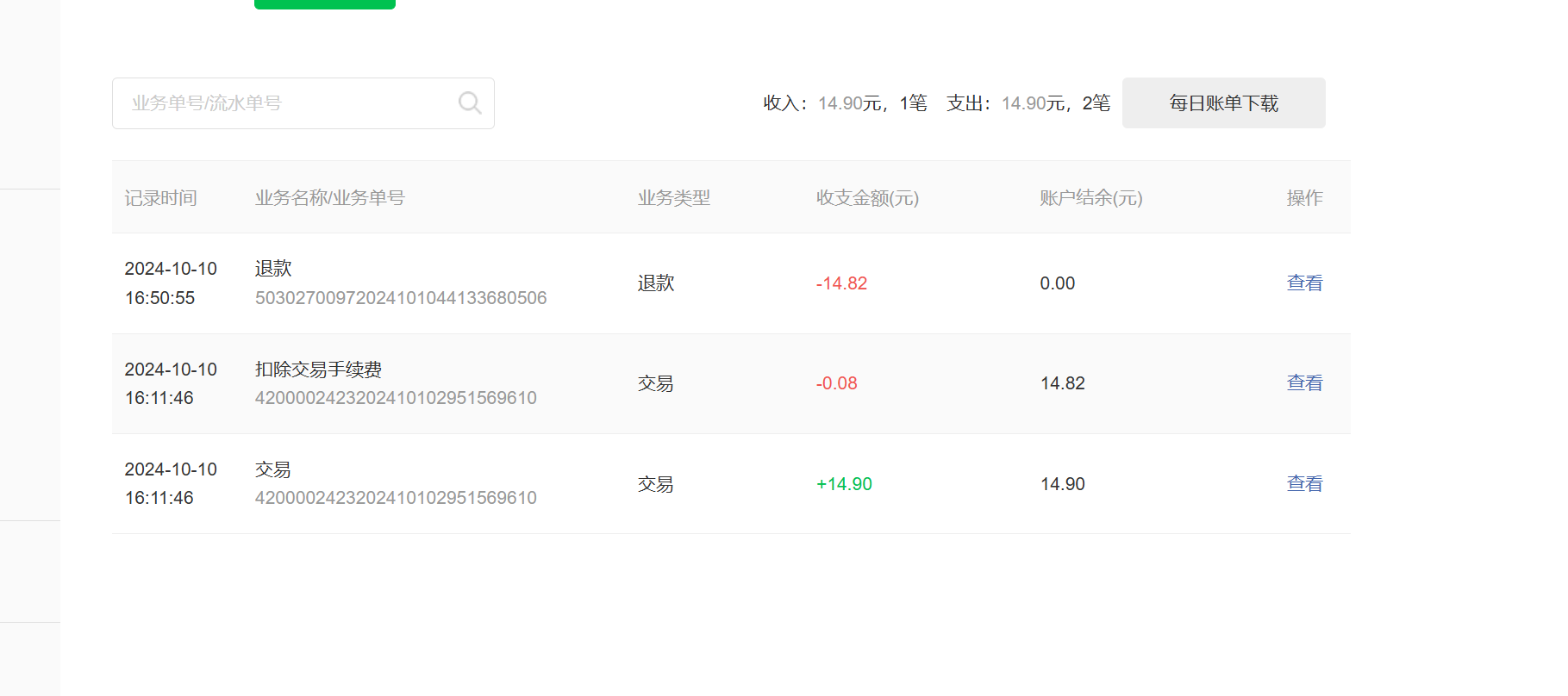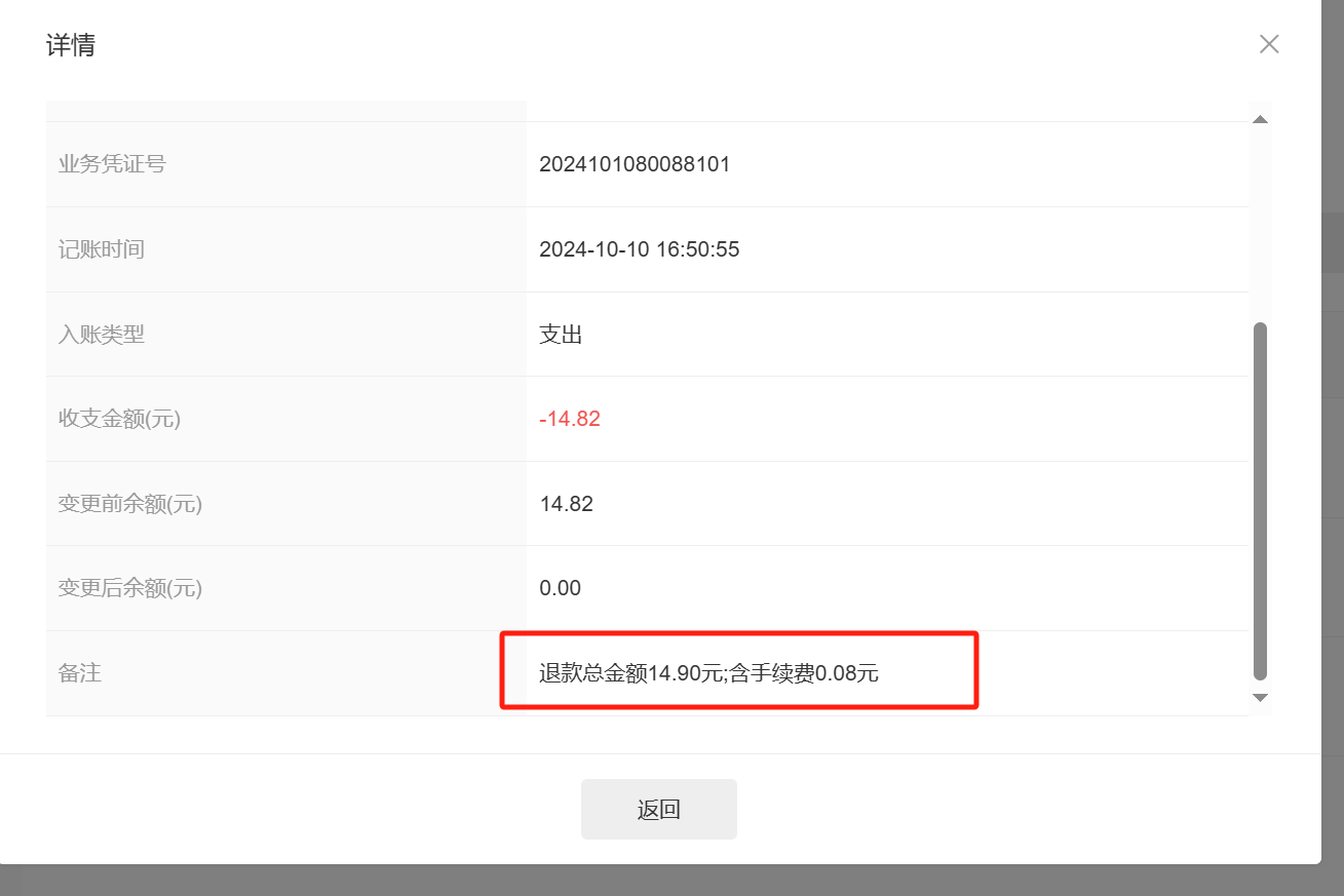 只有一笔订单并且支付了,现在订单要退款,只能通过接口进行退款,并且接口返回: 《余额不足》,不足的原因是因为 扣除了服务费?