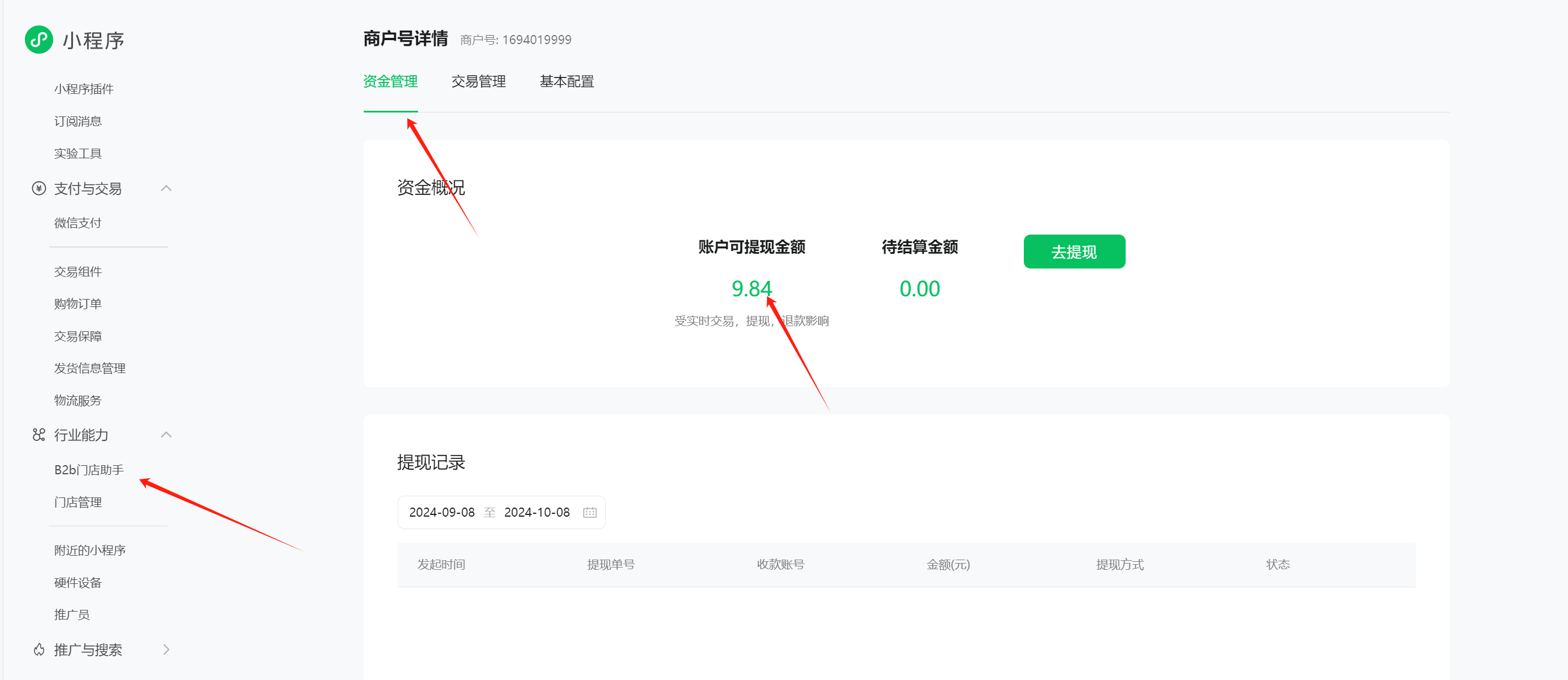 3:提现可以通过微信支付商家助手小程序直接提现。