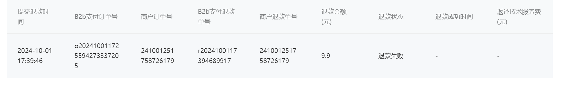 你好,这里需要先保证商户号里面有 10 块钱,才能退款出去。因为平台的手续费是退款成功后,后返还进商户号的。