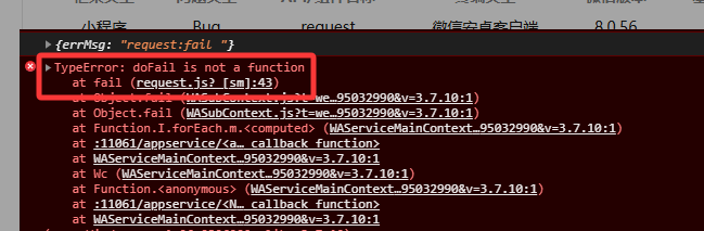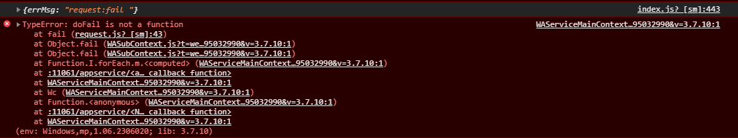 这个不是你小程序代码问题吗。doFail这个方法不存在啊