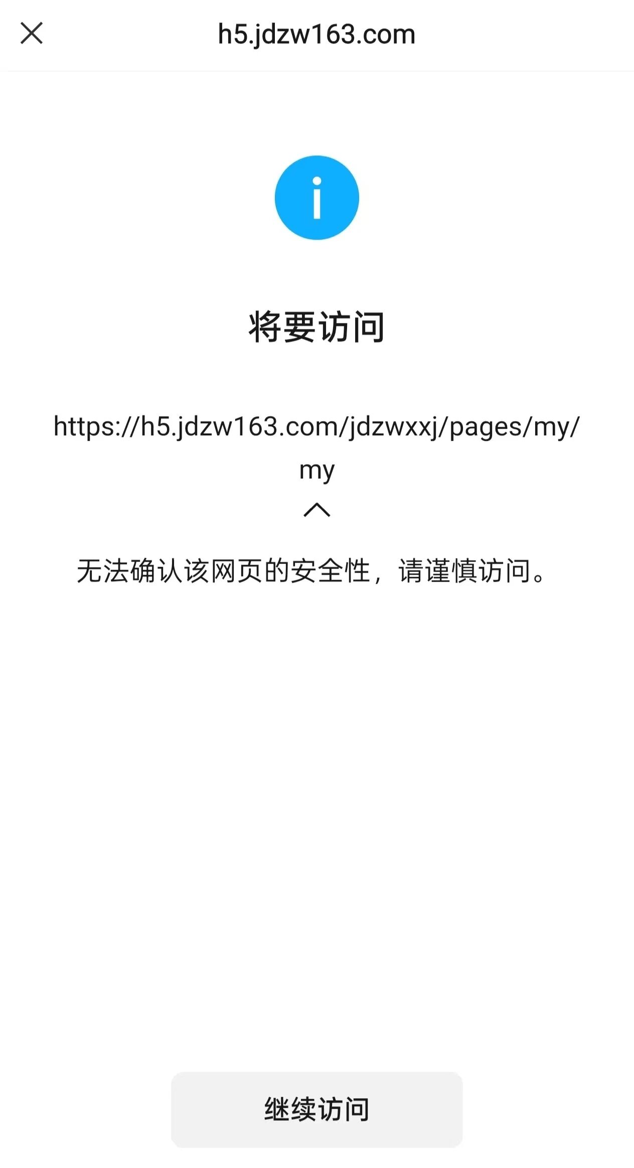 您好,域名(https://h5.jdzw163.com/jdzwxxj/pages/my/my)域名在腾讯云注册并备案通过,服务器也在腾讯云,浏览器访问正常,我是网站开发者,访问时间如图微信访问网站出现“无法确认该网页的安全性,请谨慎访问”,经检查网页里没有不安全的内容,请核实后帮忙解除拦截,谢谢!