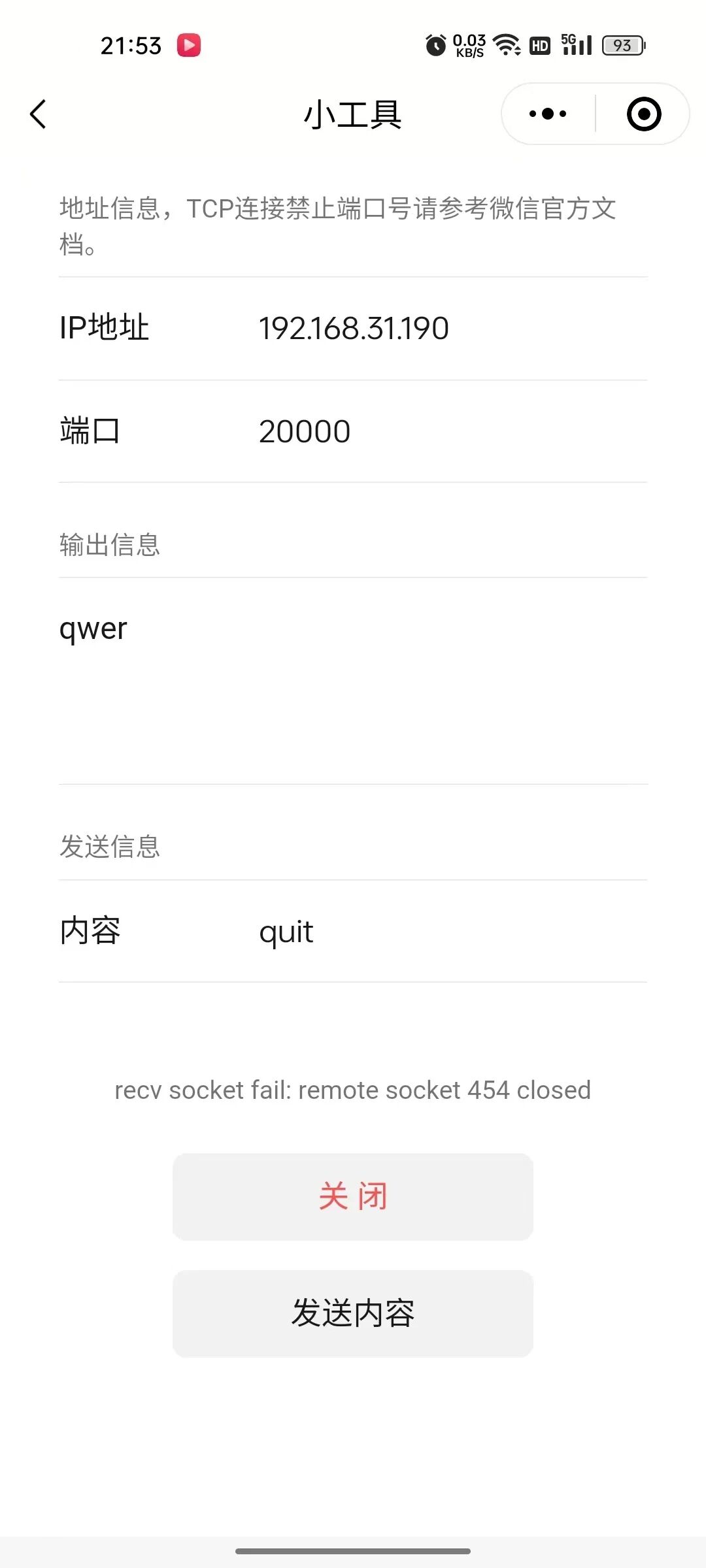 具体逻辑就是,客户端向服务端发送quit,服务端收到quit后,会关闭socket,从wireshark抓包,可以看到服务端发送了FIN,但是客户端没有回复FIN。我客户端界面显示了报错,这是onError调用输出的结果。这个很容易复现的。让服务端主动断开连接。我想要的结果是服务端断开连接后,客户端收到FIN帧,回调onClose,我onClose监听函数中有是否socket逻辑,并且界面上会有响应,会禁用发送消息按钮。