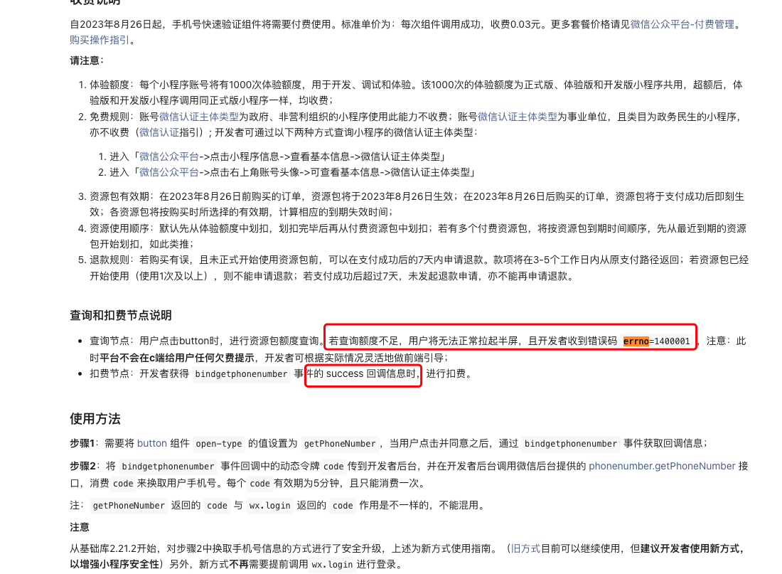 bindgetphonenumber事件的 success 回调信息时,进行扣费。