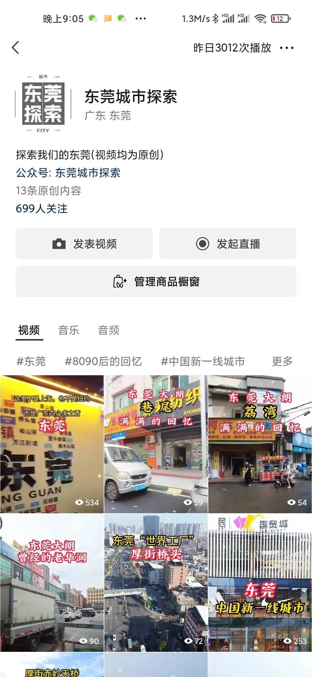 你好,视频号的同事,我视频号是正常推荐,流量播放是0播放,麻烦帮我处理一下,已经对之前的视频内容删除整改了,无意对抗规则,如果有其他问题麻烦指导一下,求回复,感谢! 视频号名字:东莞城市探索 微信号:buybuybuy1017