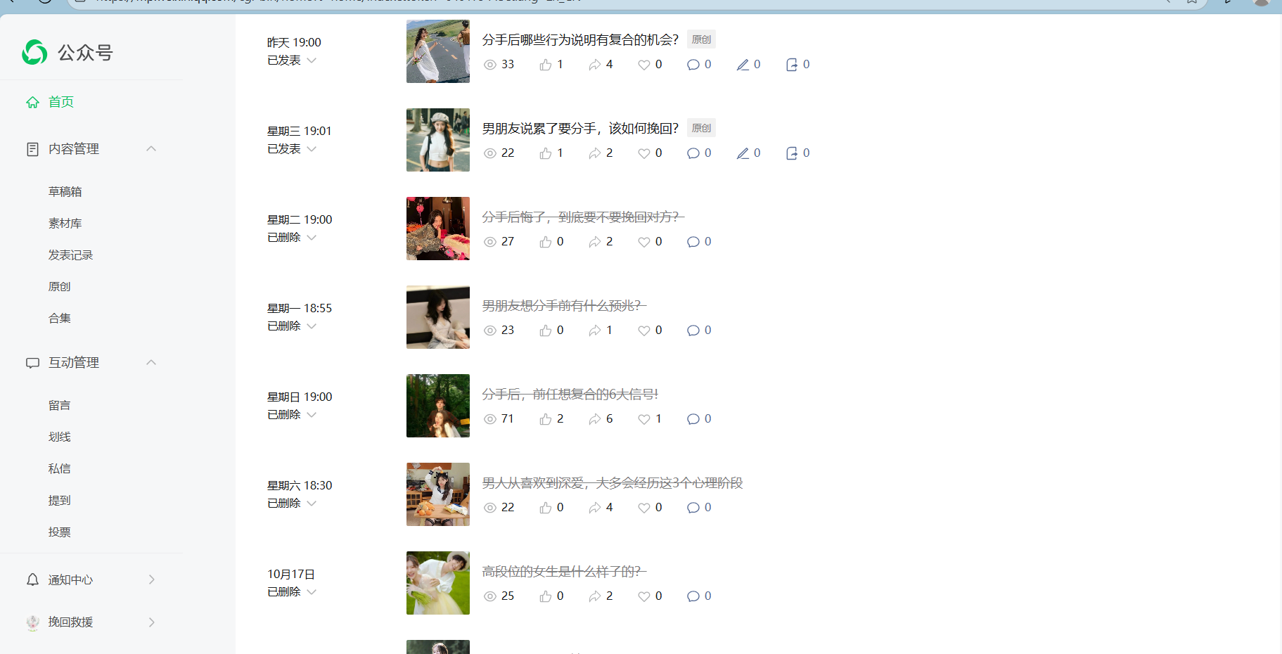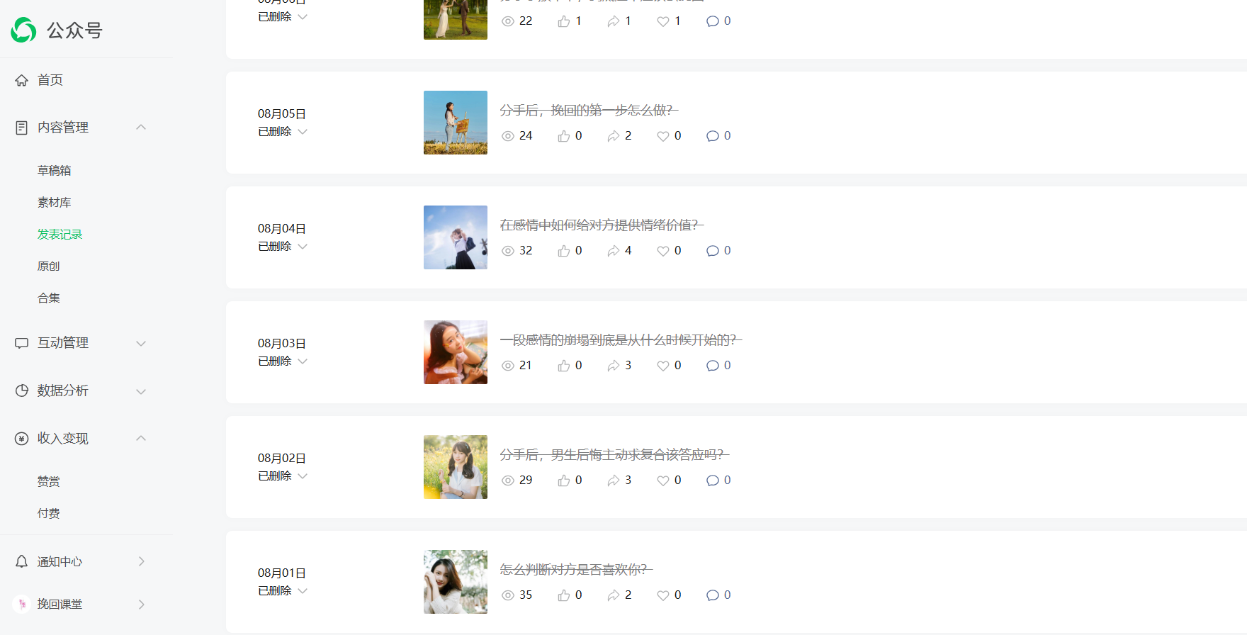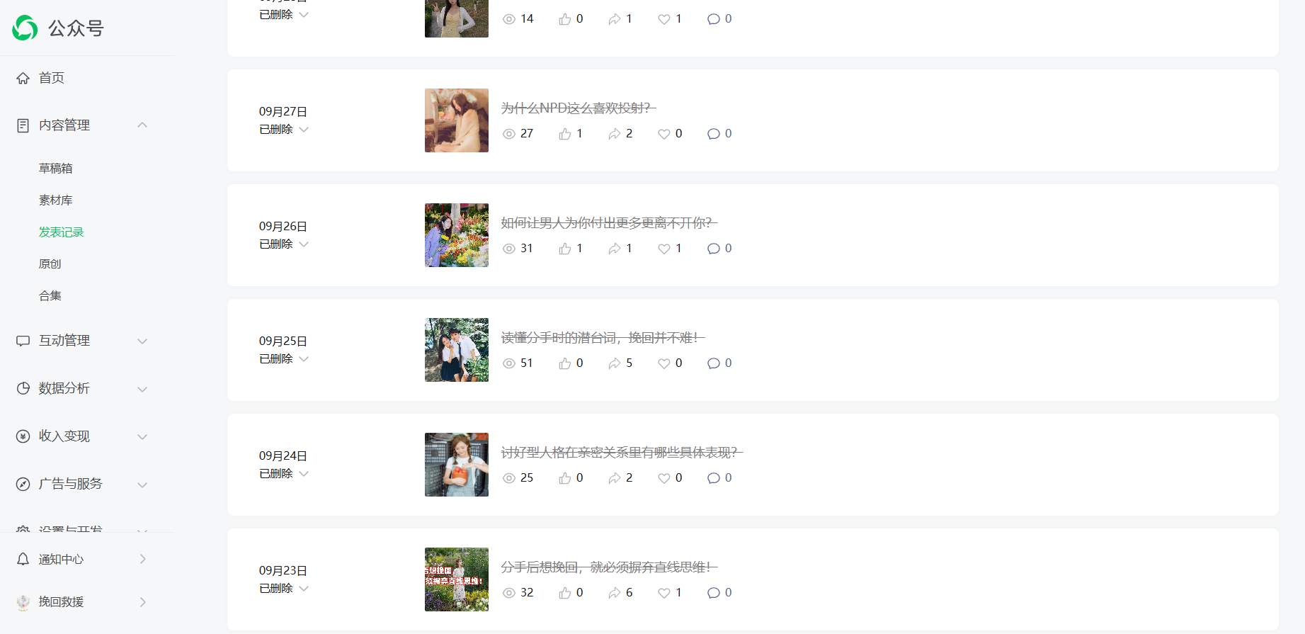 问题反馈:该账号发布的内容可能涉及违反公序良俗导致被限流,现在已经整改,并保证以后绝不再犯,请管理员帮忙恢复流量。整改截图如下(已经删除所有可能涉及违规的内容):