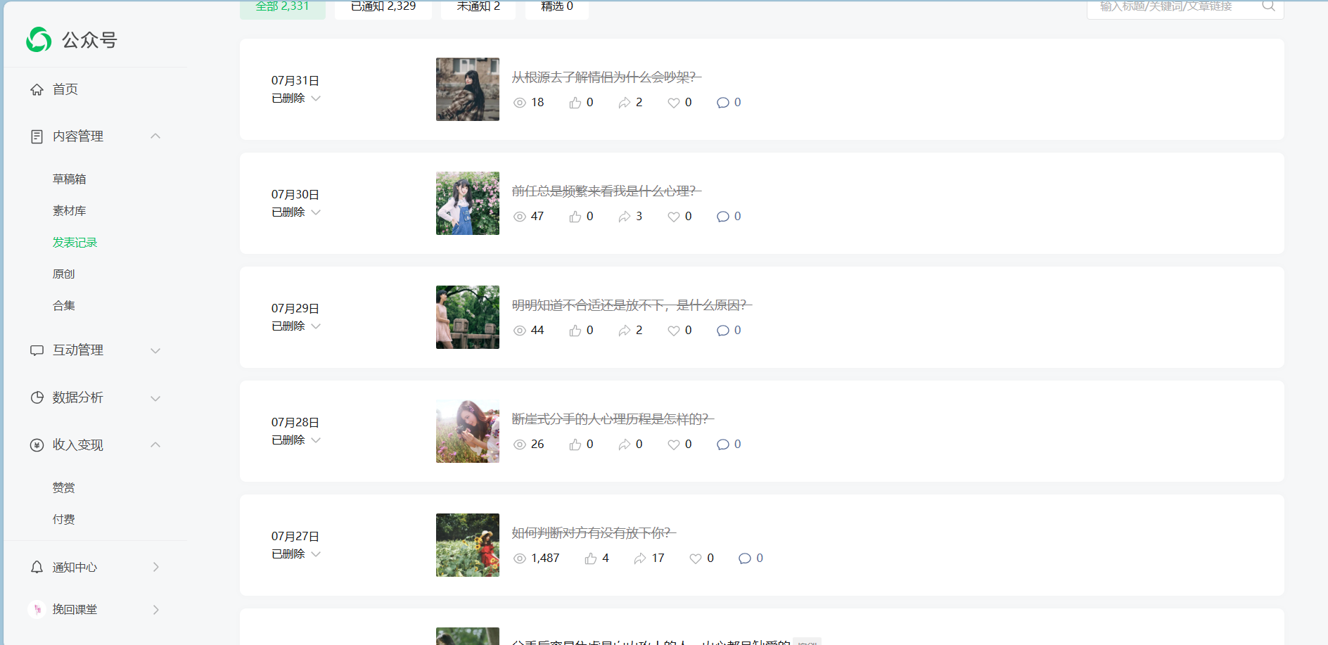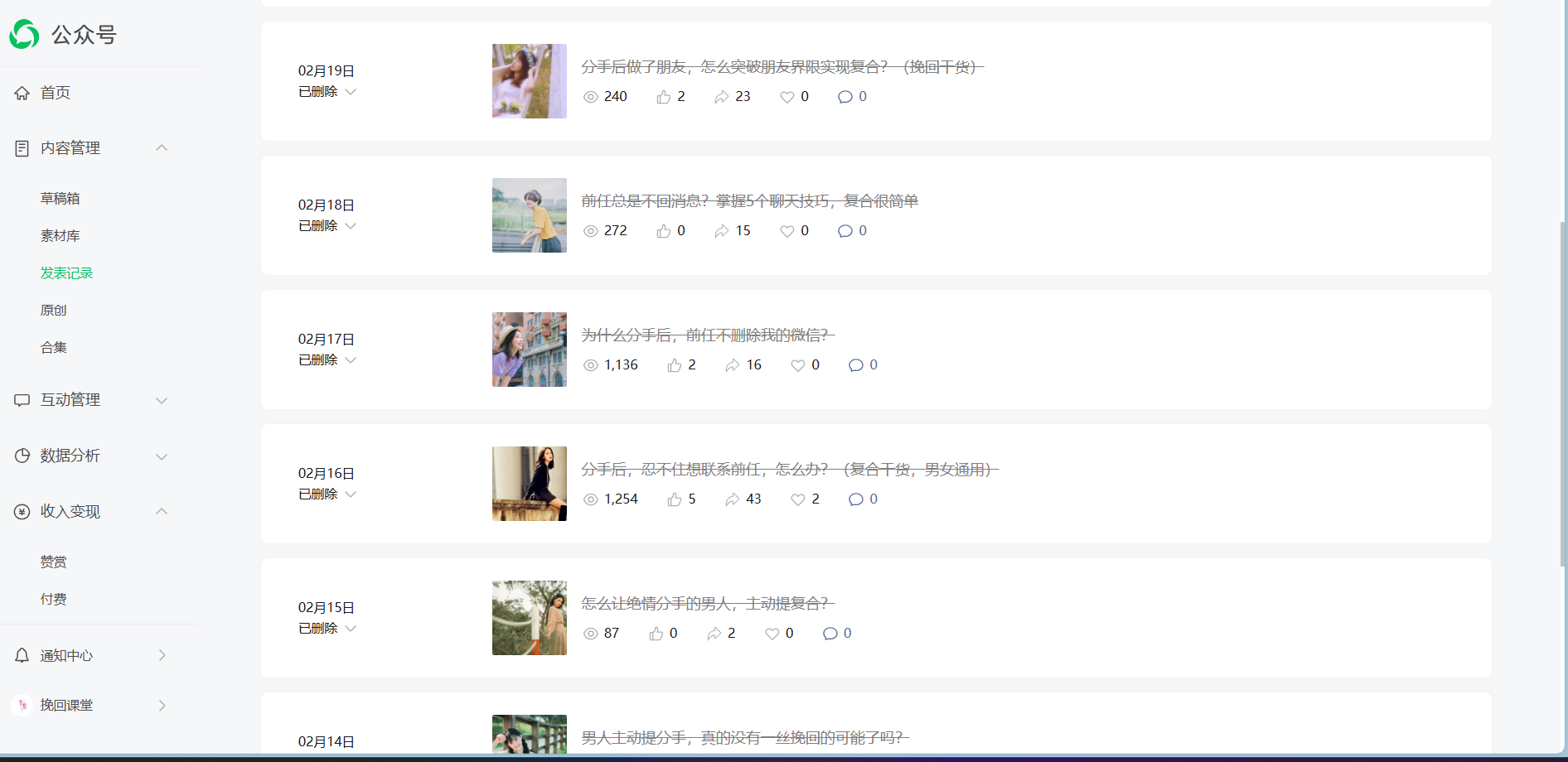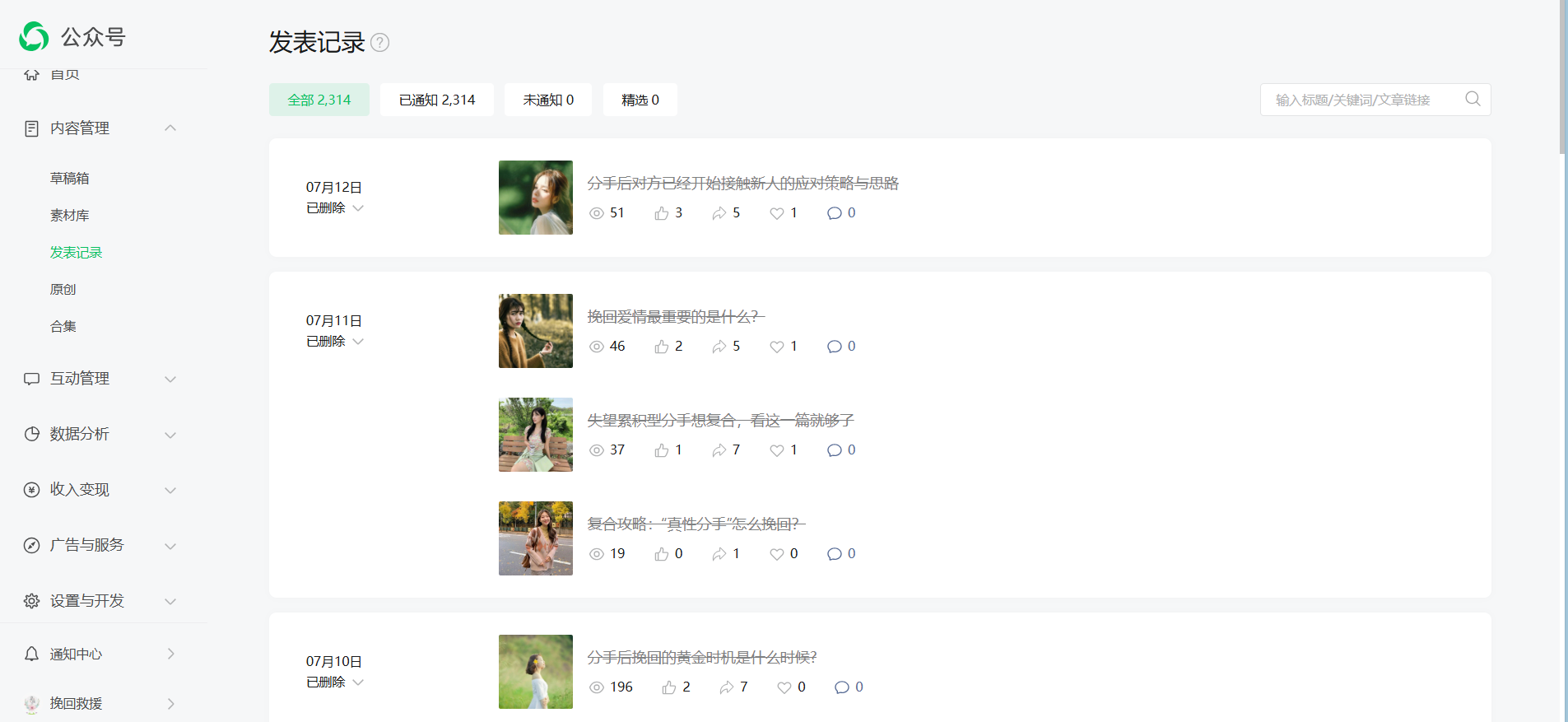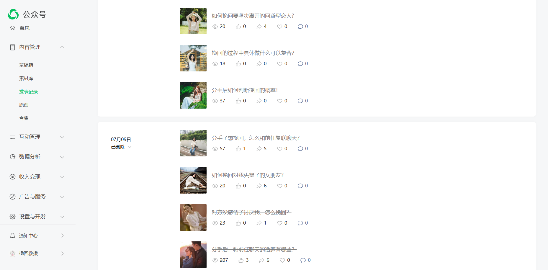 问题反馈:该账号发布的内容可能涉及违反公序良俗导致被限流,现在已经整改,并保证以后绝不再犯,请管理员帮忙恢复流量。整改截图如下(已经删除所有可能涉及违规的内容):