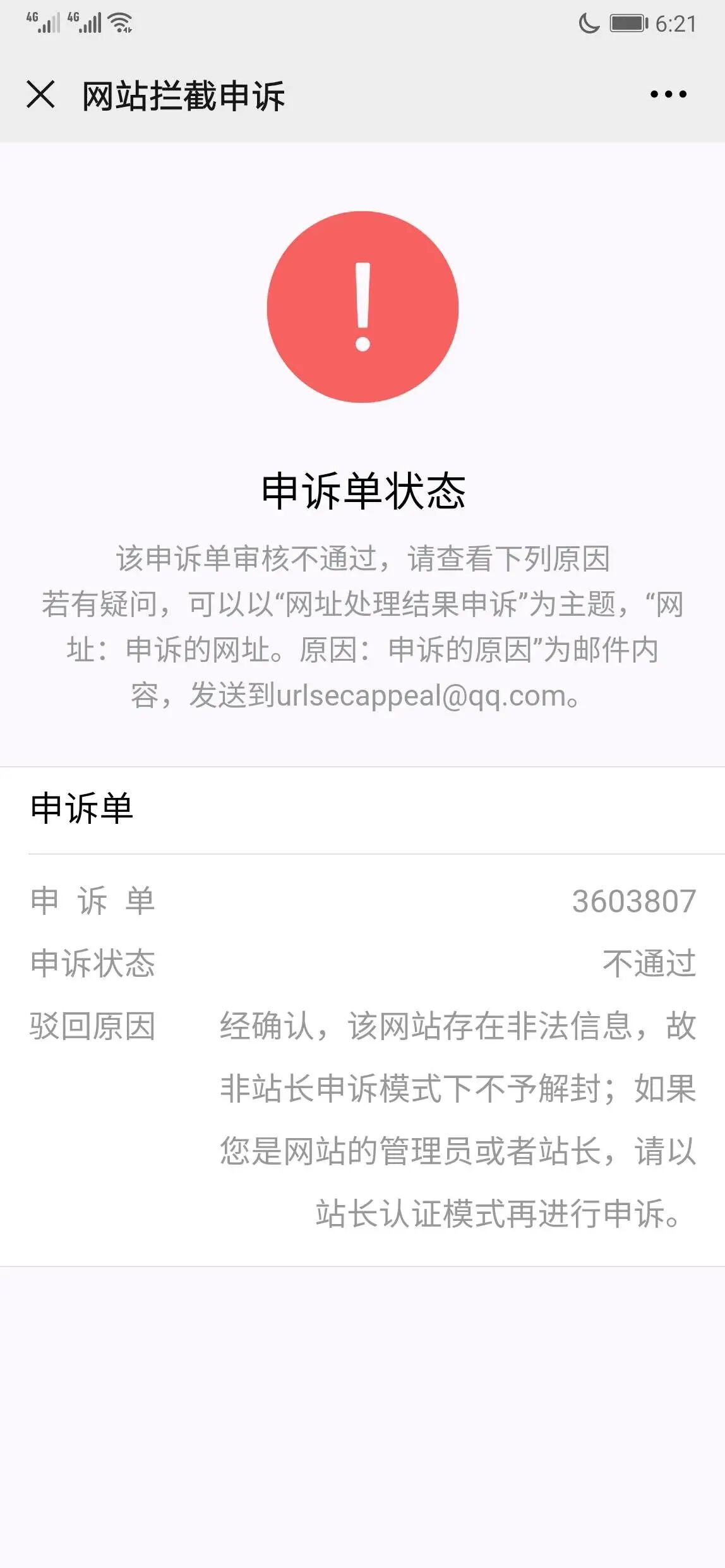 去申诉吧,腾讯网址安全中心提示有问题。