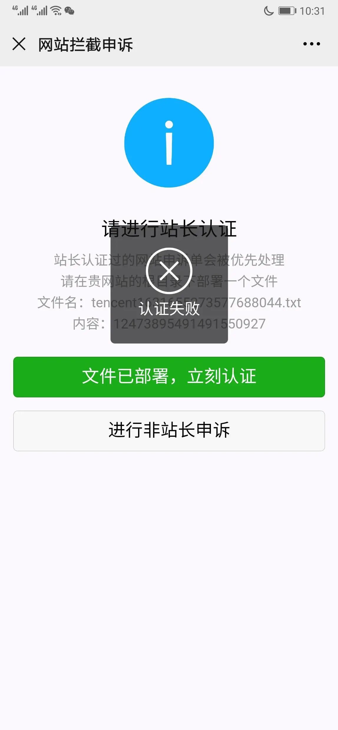 我的网站www.sjcdz.cn被微信误拦截了,然后我按照指引上传文件后站长渠道和非站长渠道均提示审核失败,我们认真组织自查和到其他网络安全中心均检查没有问题,请求予以帮助并解决为盼!
