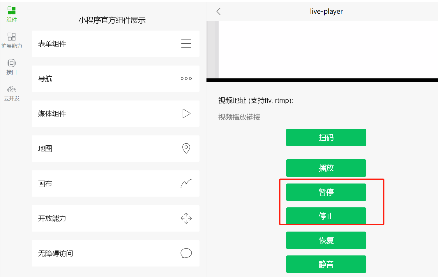 你可以直接拿你们官网的这个体验版小程序测试,在电脑端 测试live-player组件。暂停,停止都不生效。