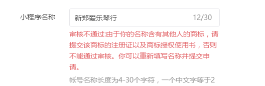 公众号的名称是可以使用“爱乐“,小程序为什么不可以呢