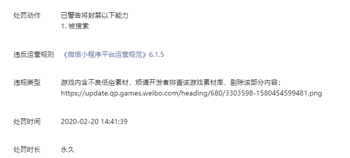 玩家微信自己带过来的头像展示在排行榜,为什么拍我们违规,而且永久封禁被搜索?这中问题直接甩锅给开发者真的好么?