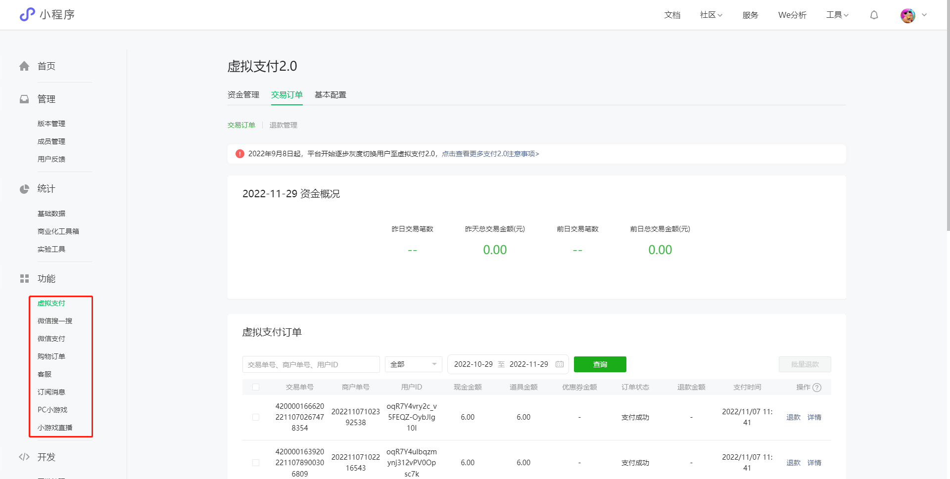 小程序申请注销了。但是现在虚拟支付1.0的入口消失了怎么办?看不到订单怎么结算呢?