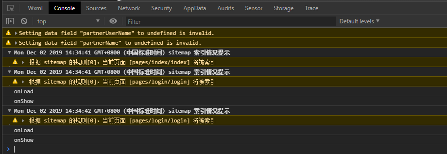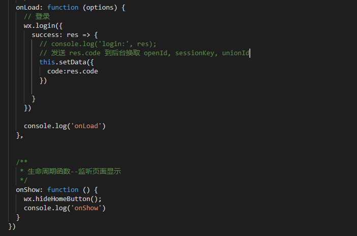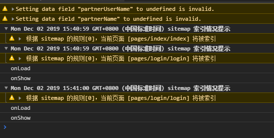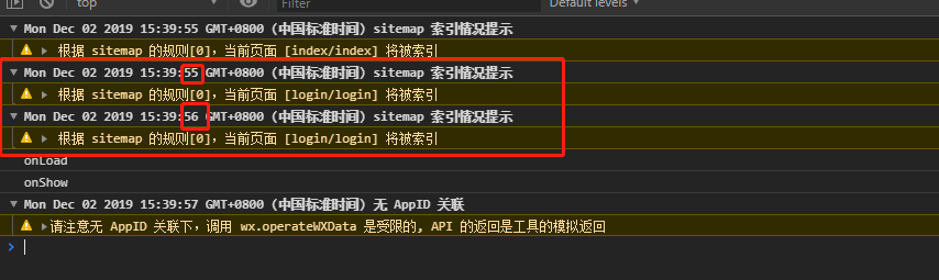 我在登录页onLoad和onShow分别打印了日志 ↓↓↓