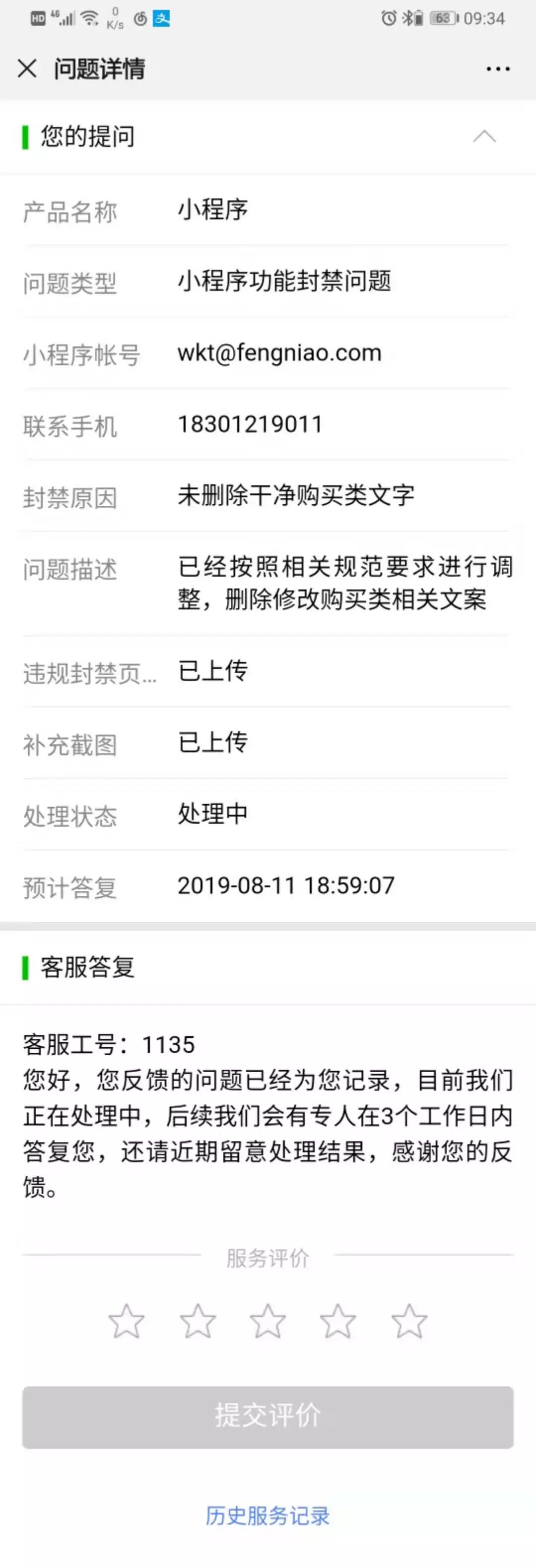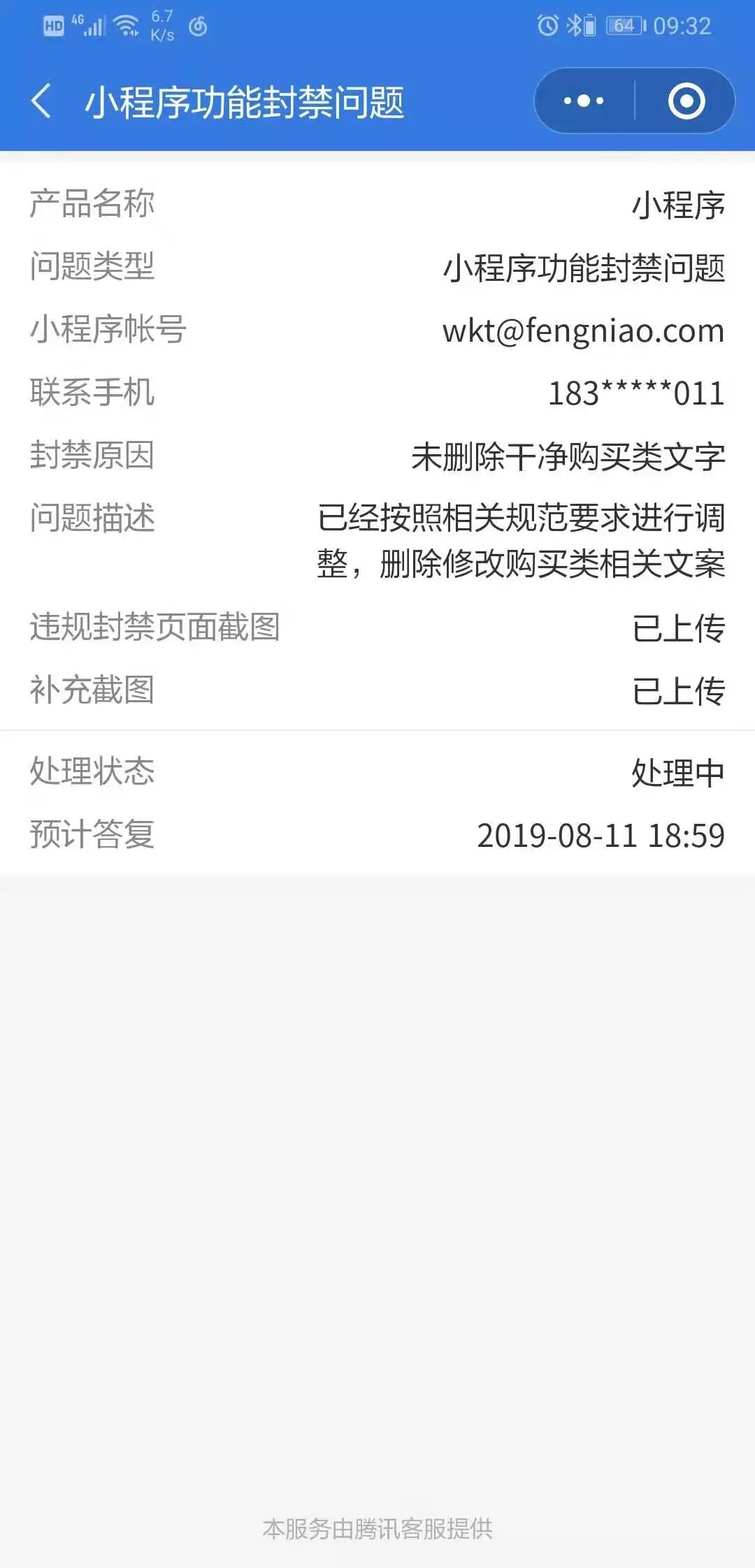 您好,我在腾讯客服提交申请 小程序IOS解封,说3个工作日回复,现在都快一周了,还没有回复,辛苦帮忙看看什么问题?