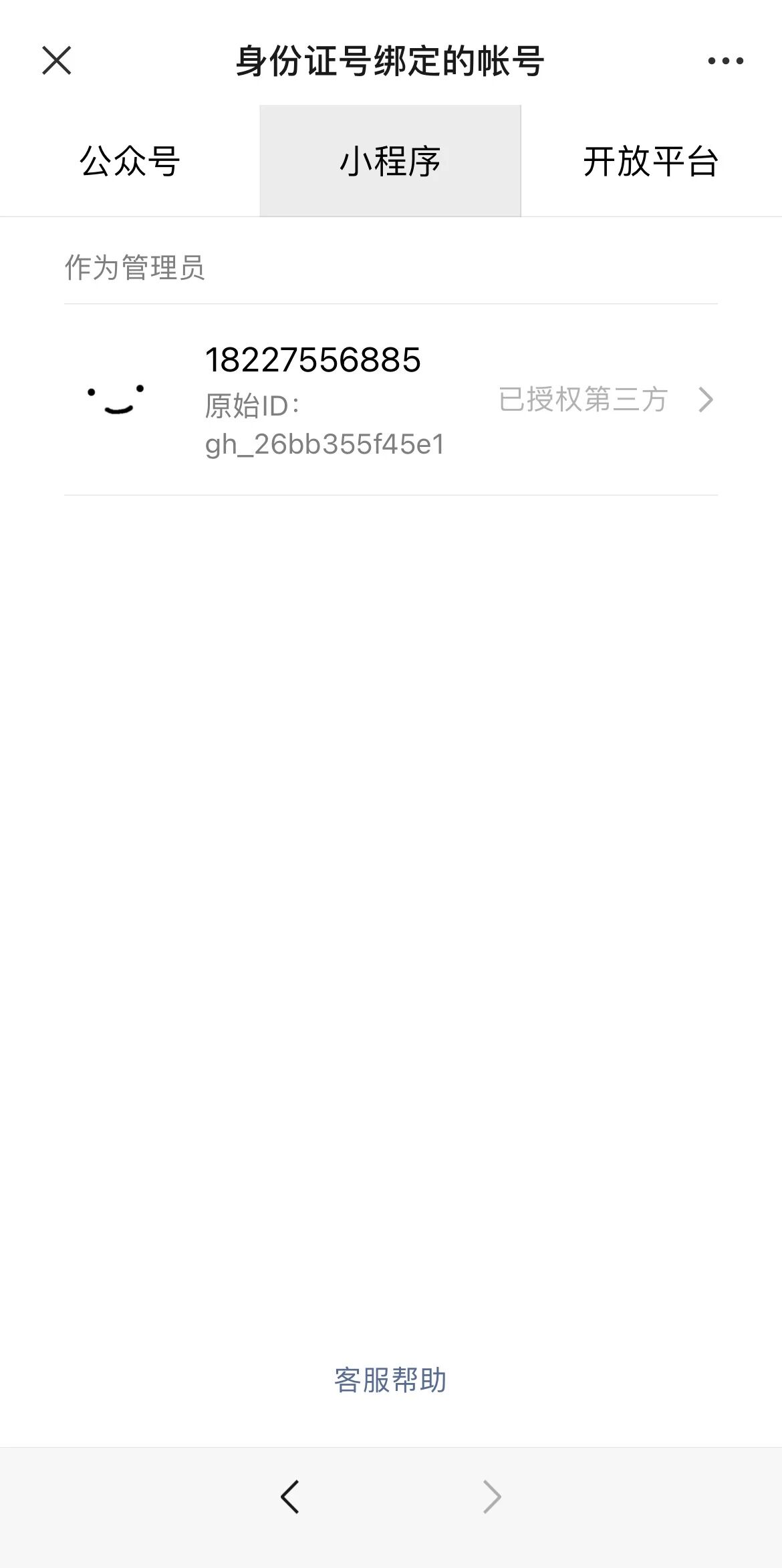 用微信公众平台助手,微信号绑定查询没有查询到帐号,用身份证号码查询就有小程序帐号,这是什么原因呢?该怎么解除?