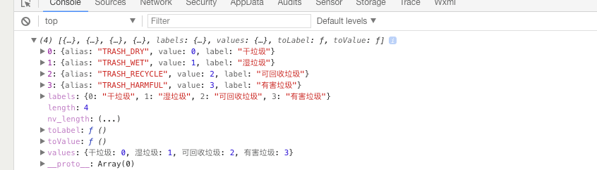 绑定wxml中就无法获取labels,values等属性了