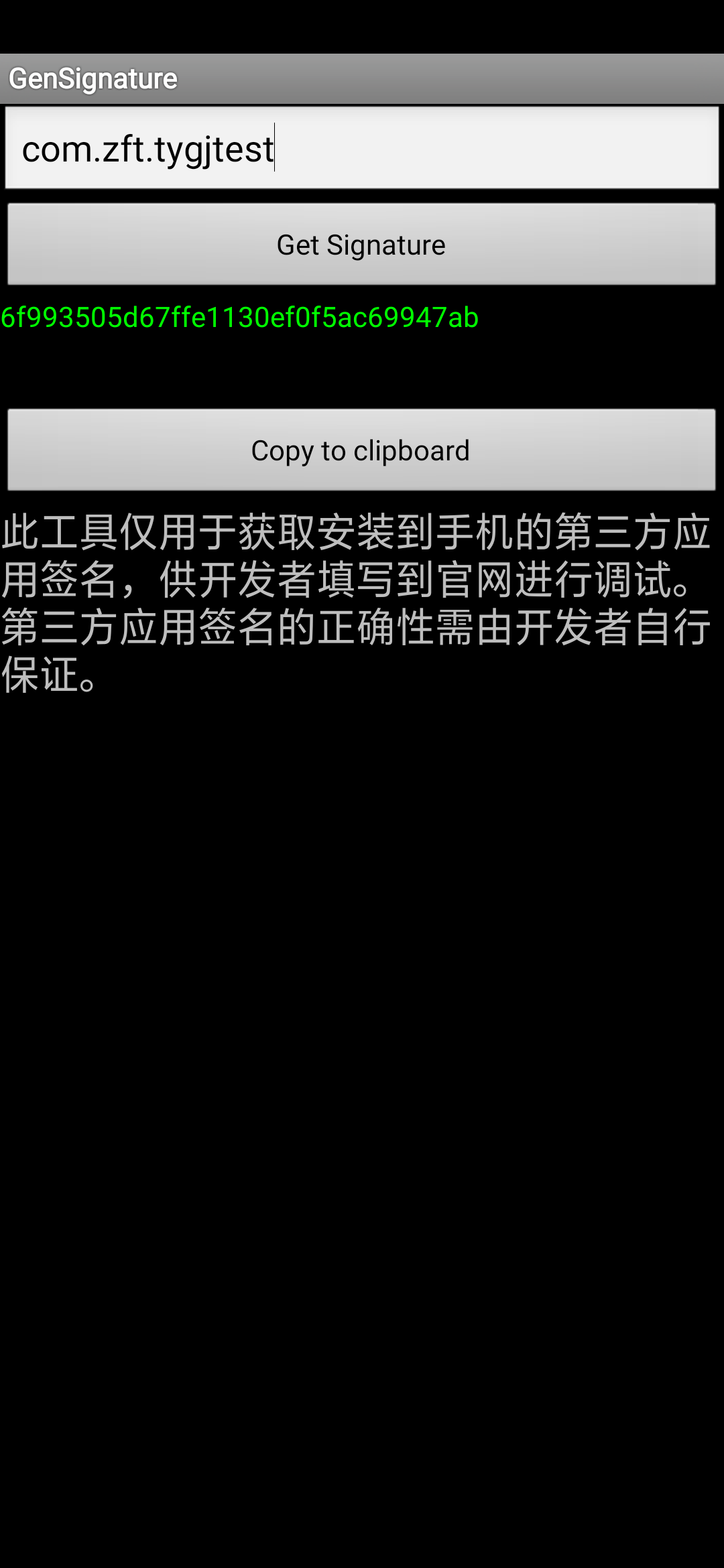 用微信官网提供的获取的应用签名