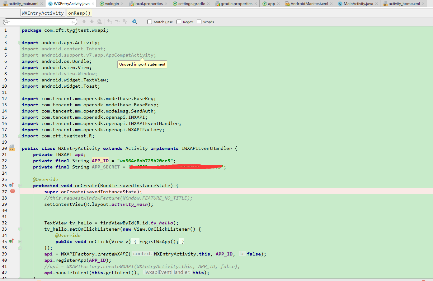 WXEntryActivity代码