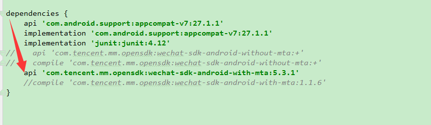 build.gradle里面依赖的信息(官网的文档时注释掉的第一行,测试不行。后来看官网提供的例子用了with-mta没用without)
