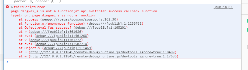 试试setTimeout(function(){page.dingwei_s(obj, carNumber)}, 200)干脆全部放进来wx.switchTab({url: '/pages/mp/mp',success() {setTimeout(function(){let page = getCurrentPages().pop();if (page == undefined || page == null) {return;}page.dingwei_s(obj, carNumber);}, 200)}})你确定 page内有 dingwei_s 这个方法?