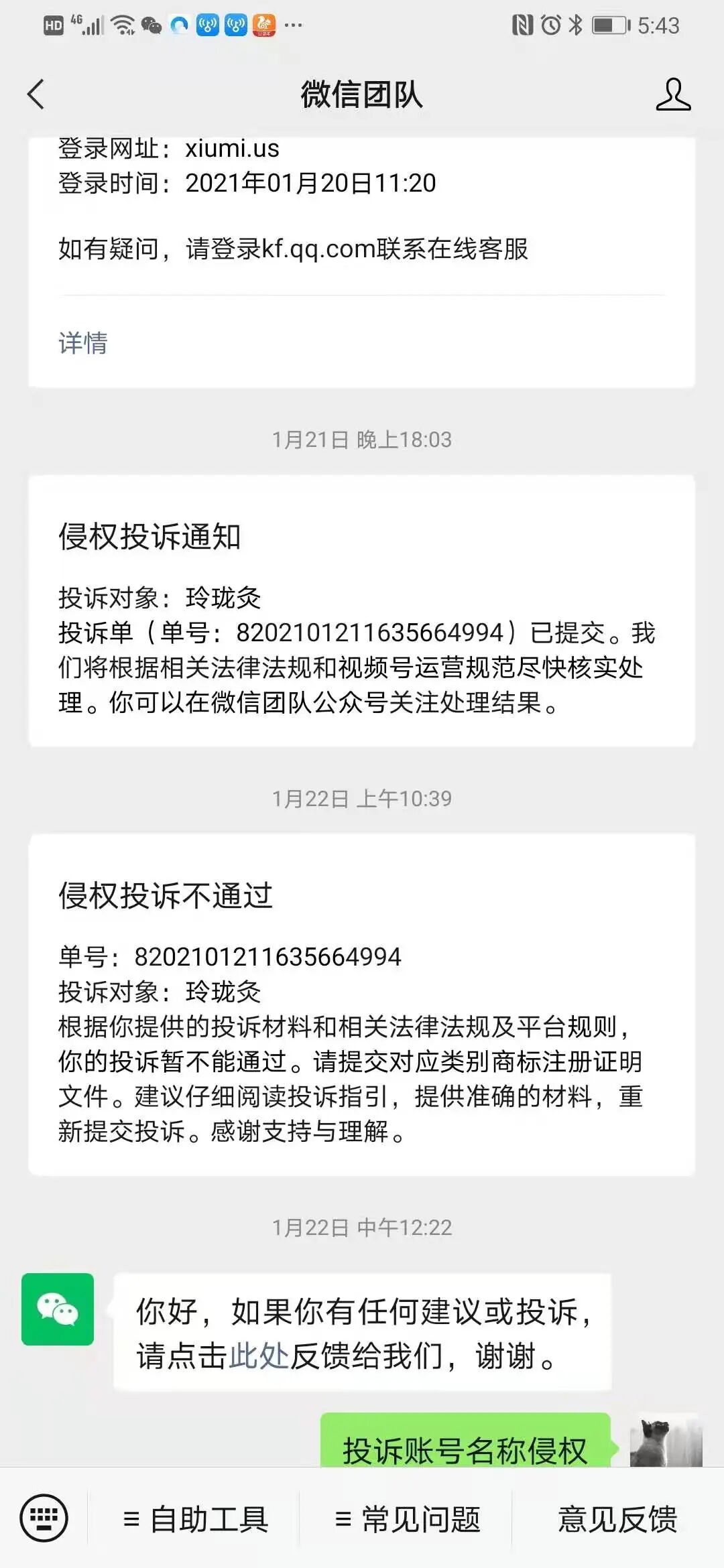 你好,请问是公众号昵称投诉视频号昵称吗?