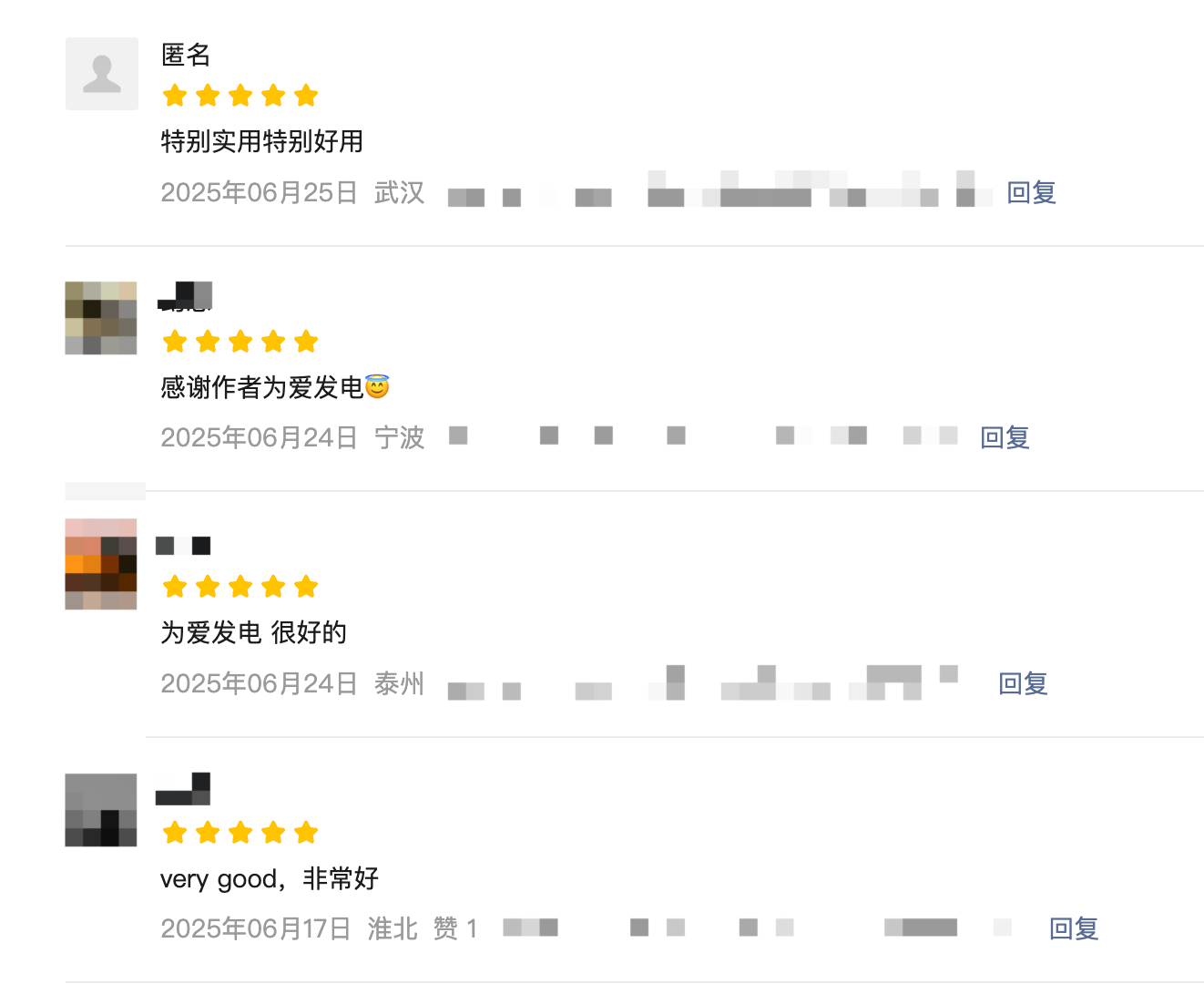 最近,我遇到了一件难以理解的事情。作为一个独立开发者,我一直在用心维护一款自己的小程序。它不涉及交易、不收任何费用,没有广告,唯一的目标就是为用户提供便利。凭借其简单实用和不断更新的特性,吸引了很多用户留下了真实的好评,甚至自发给我打赏。每一条评论,都是对我工作的认可,也是我不断修复Bug、优化功能的动力。